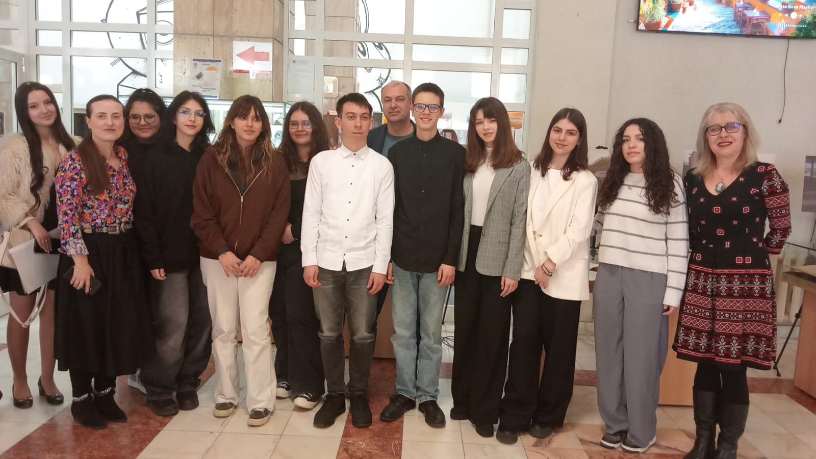 Ieri, în deschiderea expoziției, literatura română de avangardă a fost temă de dezbatere între organizatori – prof. univ. dr. habil. Angelo Mitchievici, managerul instituției, dr. Corina Mihaela Apostoleanu, șef Serviciu, și Doina-Monica Moșoiu, bibliotecar compartiment Colecții Speciale – cu elevii trupei de teatru a Liceului Teoretic „George Călinescu” din Constanța.
