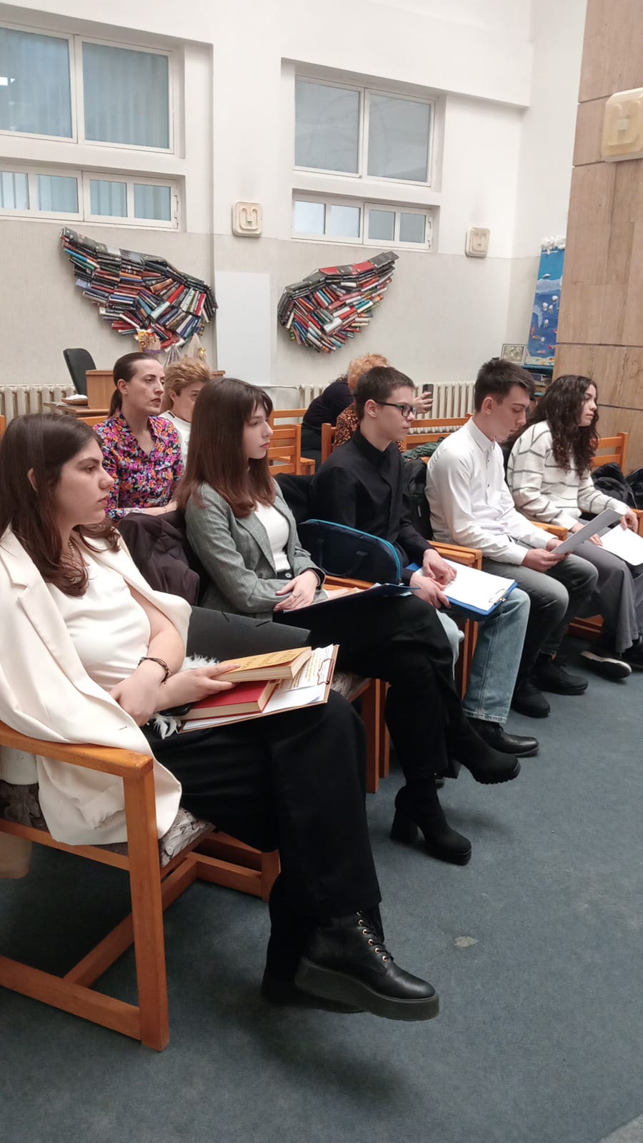 În sala numită „Referințe generale”, de la parterul Bibliotecii Județene, mai mulți tineri de la Liceul „George Călinescu”, timizi dar cu visuri mari, au vorbit despre ce înseamnă pentru ei literatura.
