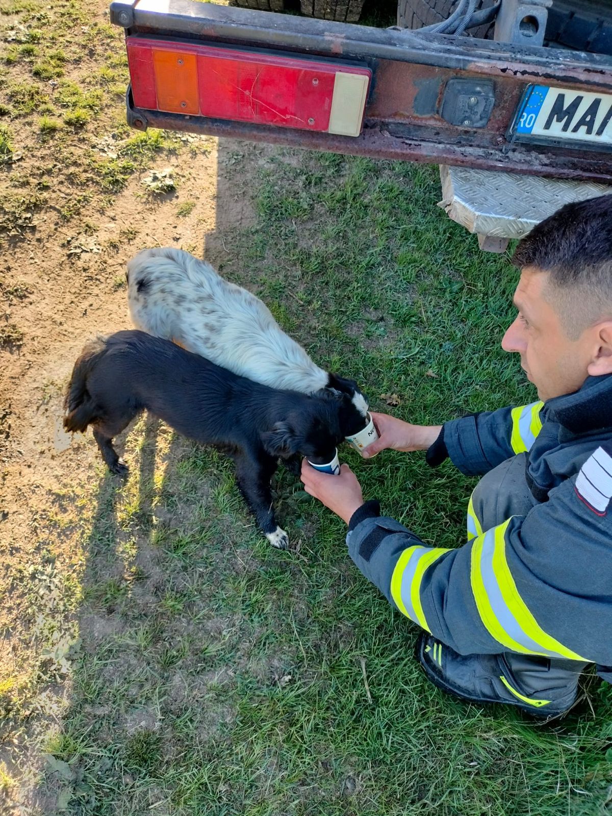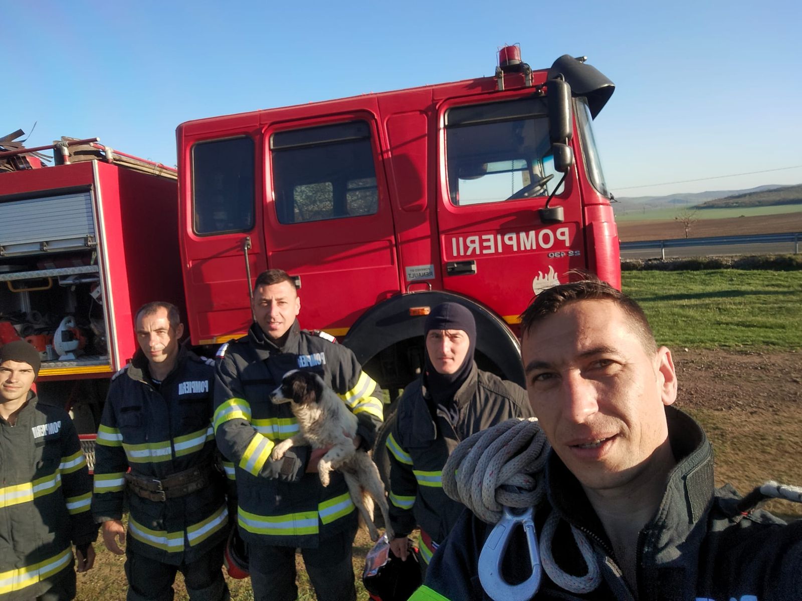 TULCEA: Două căţeluse ce căzuseră într-un puţ adânc de 8 metri, salvate de pompierii de la Staţia Babadag