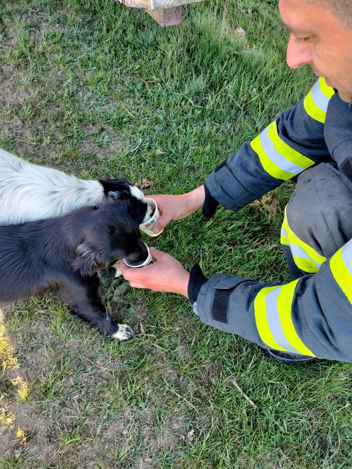 Aventura celor două cățelușe nu s-a incheiat decât după ce colegii noștri s-au asigurat că acestea sunt bine, sănătoase și, după ce au băut apă oferită de salvatori au plecat spre sat care nu era la o distanță prea mare.