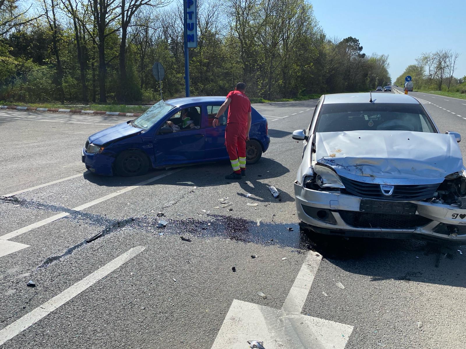Echipajele medicale ale ISU Dobrogea și SAJ Constanța au intervenit la un accident rutier produs între două autoturisme, în intersecția de la intrarea în stațiunea Neptun.