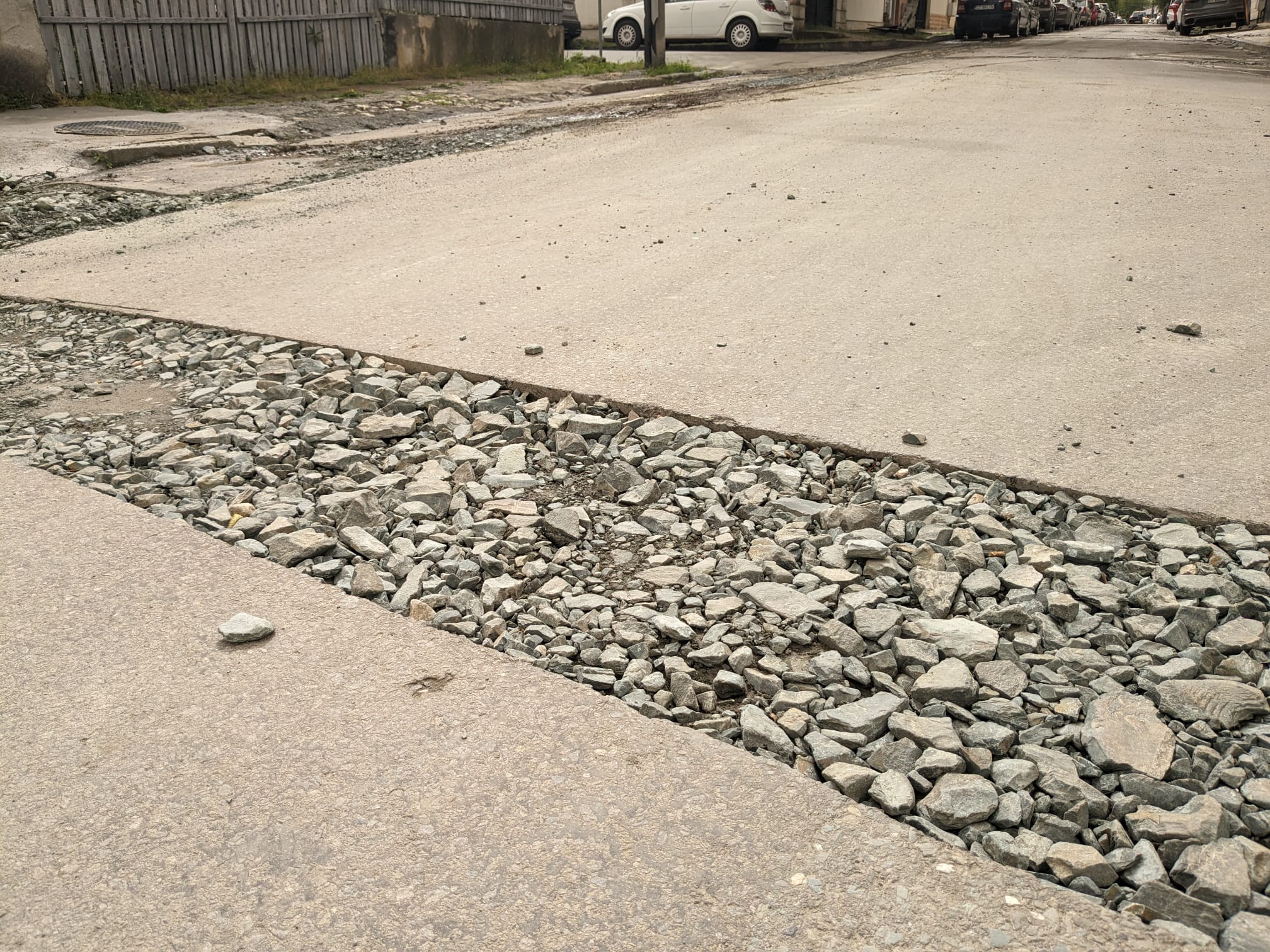 Utilajele și muncitorii au dispărut din zonă de aproximativ o lună, dar strada a rămas brăzdată de aproape 50 de șanturi prost acoperite cu pietriș, care îngreunează circulația și afectează suspensia autovehiculelor.