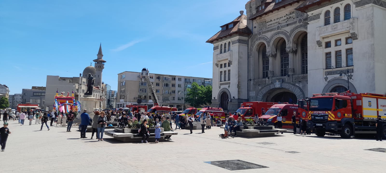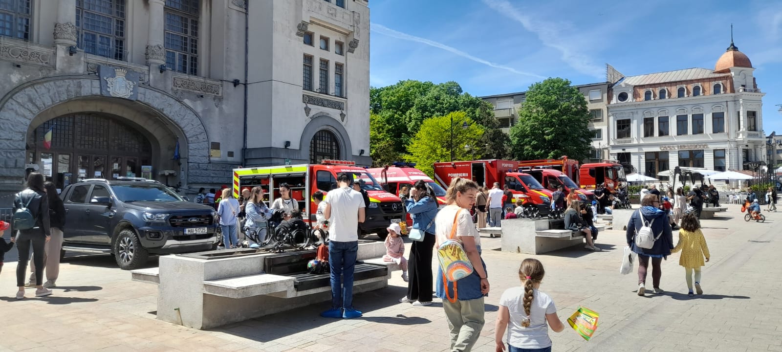 Peste 500 de copii au venit astăzi în Piața Ovidiu din Constanța să se întâlnească, preț de câteva minute, cu eroii lor, Pompierii.