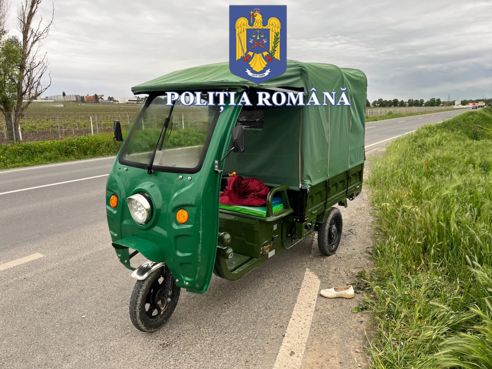 Polițiștii deplasați la fața locului au constatat că impactul s-a produs între un autoturism, condus de un bărbat, de 28 de ani, și un vehicul electric, condus de un bărbat, de 39 de ani. În urma accidentului rutier a fost rănită o femeie, de 59 de ani, pasageră în vehiculul electric.