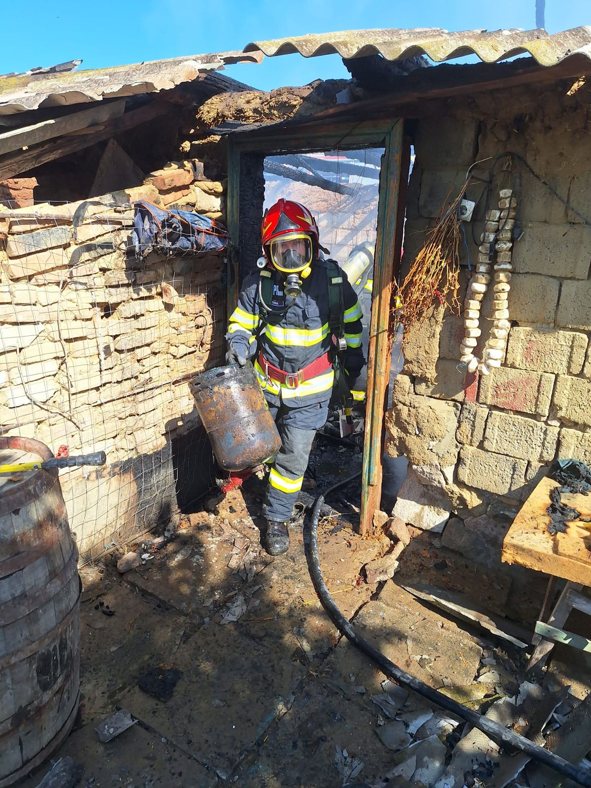 Intervenția a fost una dificilă pentru salvatori deoarece, în anexa gospodărească se regăseau 3 butelii, iar două din acestea au explodat în timpul intervenției, din fericire nu au provocat victime.