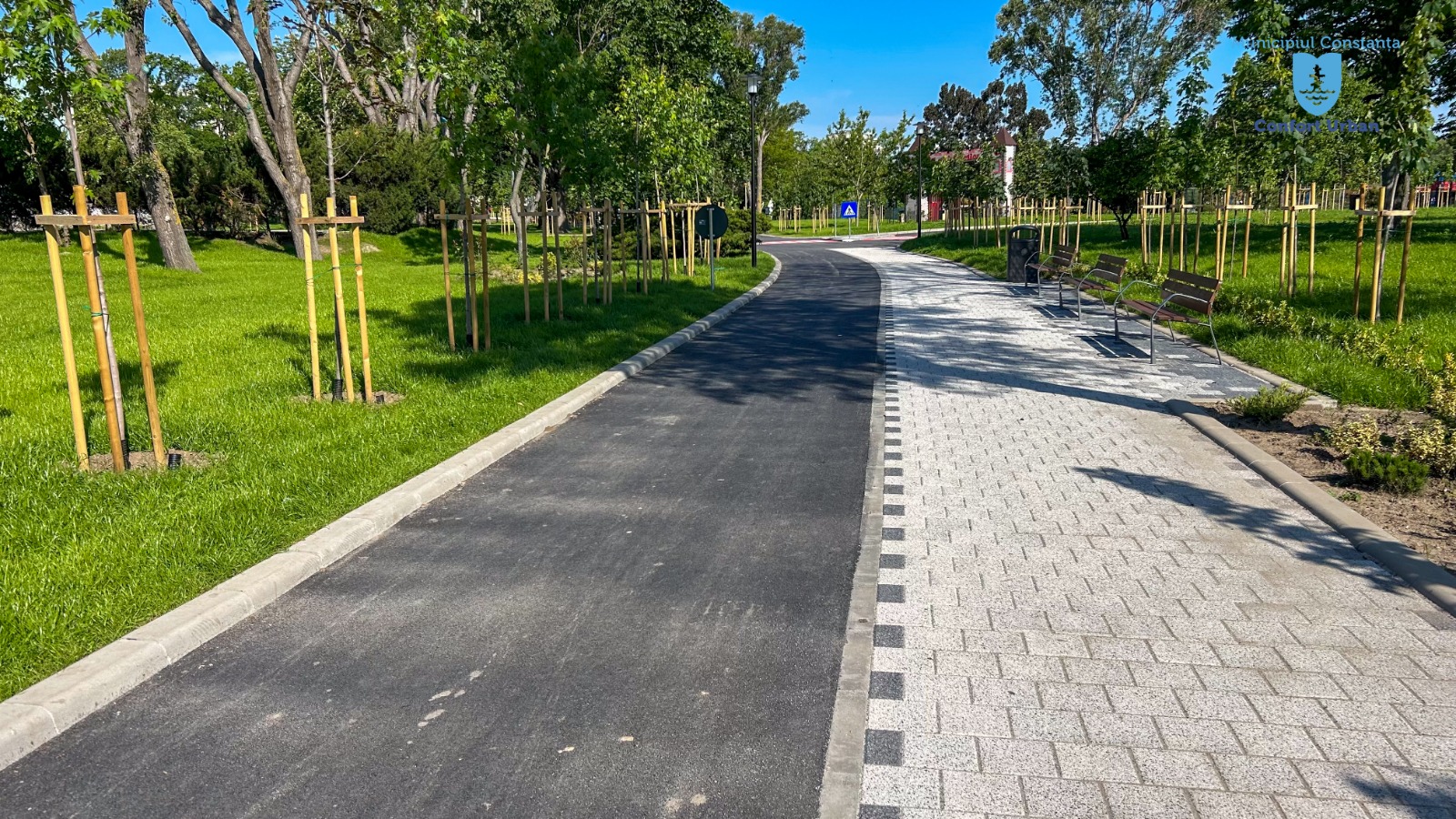 Sunt în curs de amenajare traseele pietonale din parc, lucrările sunt aproape de finalizare în zona cuprinsă între City Mall și Țara Piticilor. Au fost montate borduri, iar aleile au fost finisate cu diferite pavaje dispuse într-o structură dinamică, s-a construit o nouă instalație de irigare a spațiilor verzi, au fost plantați copaci și s-a plantat gazon. În cadrul proiectului, au fost amenajate circuite rutiere educaționale pentru copii și a fost construită o pistă de alergare acoperită cu asfalt destinat traficului pietonal, colorat. De asemenea,  au fost instalate elemente de mobilier urban.