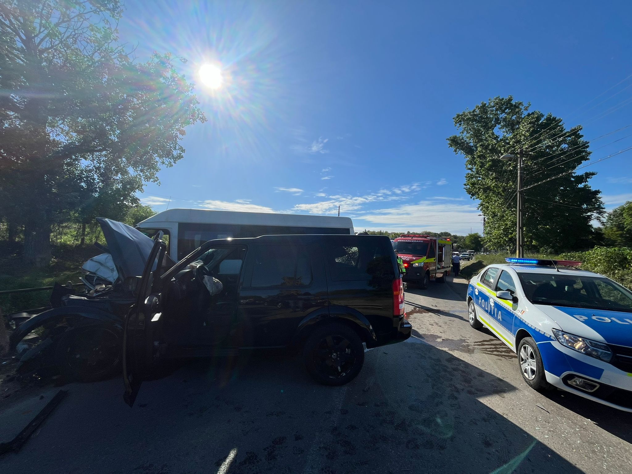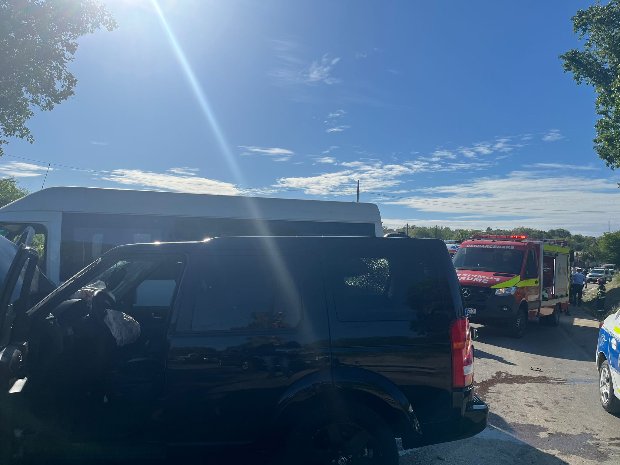 UPDATE / TULCEA – FOTO, VIDEO: Nouă persoane au fost implicate într-un accident. Impactul s-a produs între un microbuz şi o maşină de teren