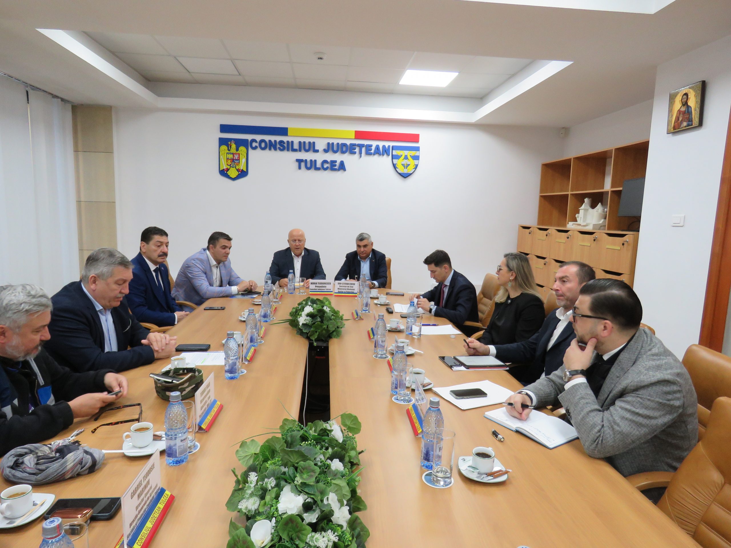 Președintele Consiliului Județean Tulcea, Horia Teodorescu, a participat, astăzi, începând cu ora 10.00, la o întâlnire de lucru a autorităților locale din arealul deltaic cu oficiali ai Ministerului Mediului, Apelor și Pădurilor pentru a discuta aplicat despre o serie de proiecte de investiții ce vor fi realizate pentru Delta Dunării, cu fonduri alocate prin programul Național de Redresare și Reziliență (PNRR).