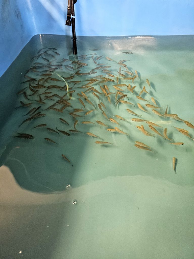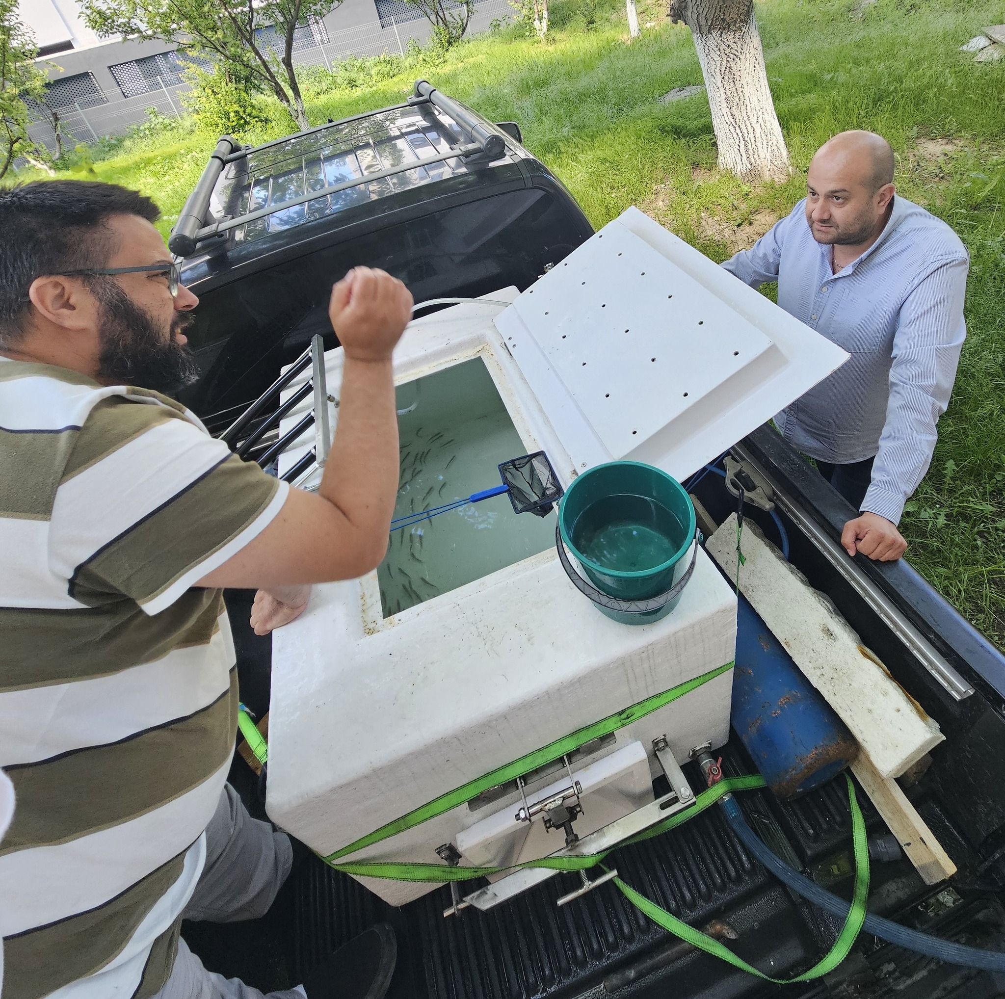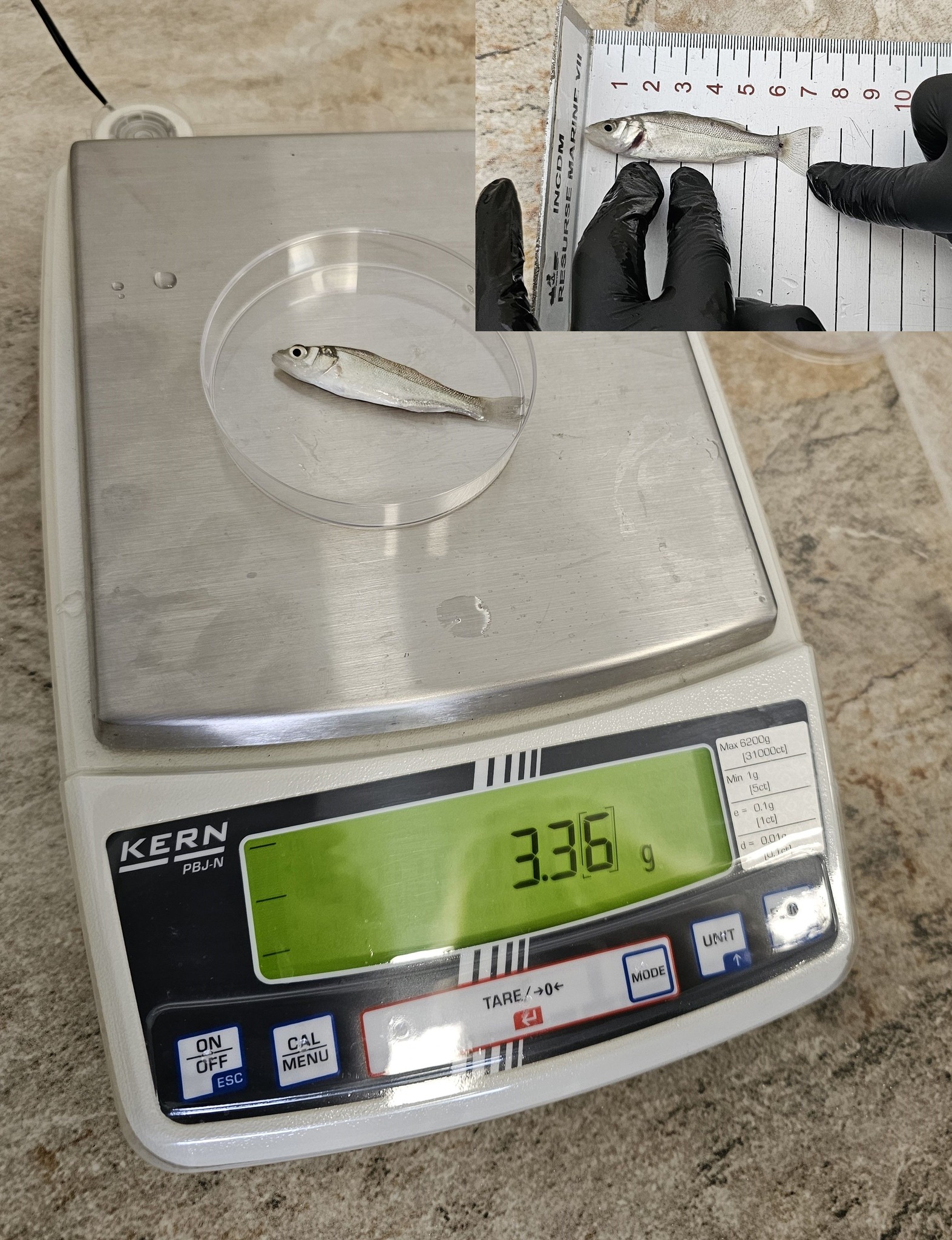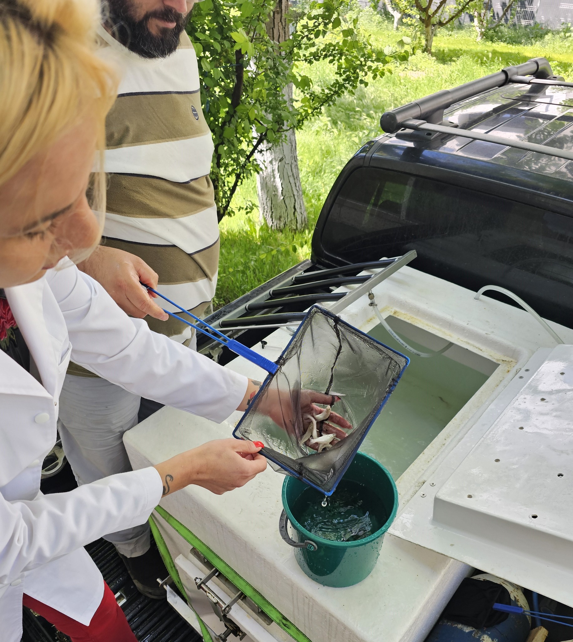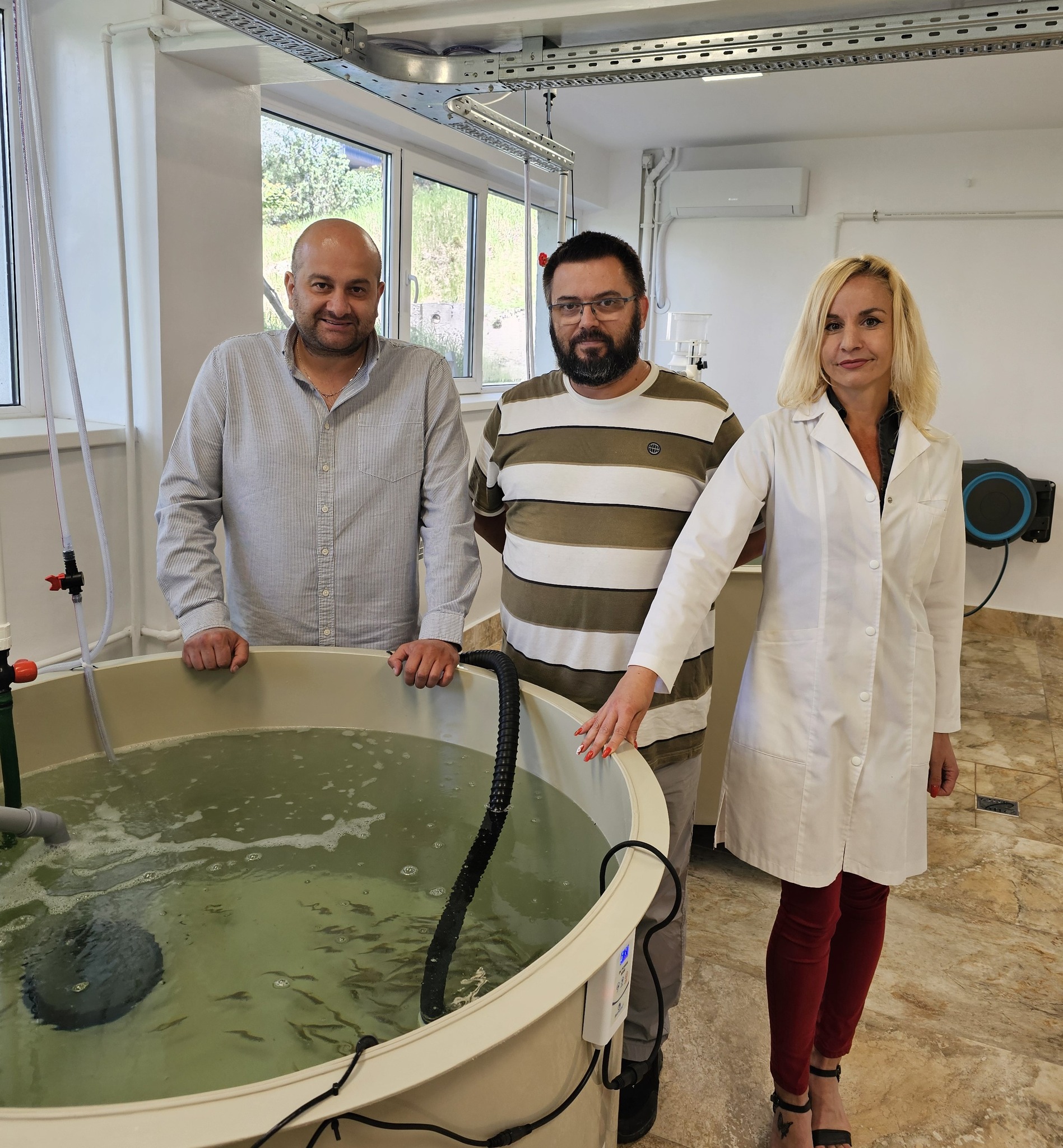 Am făcut în trecut și testări pe alte specii. Pe păstrăv, spre exemplu, și rezultatele au fost foarte încurajatoare. Am constatat că această specie poate fi crescută în cuști, în mare, în timpul sezonului rece. Și având în vedere acest lucru, ne-a venit ideea de a suplimenta cu o altă specie, care ar putea fi crescută în aceleași cuști pe timpul verii. Ne-am gândit și la bibanul de mare, dar anul acesta (anul trecut n.red.) ne-am oprit la doradă. Am achiziționat exemplare dintr-o crescătorie din Italia. Peștii au trăit la o salinitate de 35 la mie, caracteristică pentru bazinul Mării Mediterane. Au fost transportați, i-am transferat într-un bazin cu o apă preparată, utilizând sare de mare pentru a mima exact salinitatea din crescătorie și i-am ținut în carantină o săptămână. Au fost câteva sute de exemplare, puiet, în vârstă de două luni, cântărind undeva între 5 și 7 grame. Absolut nicio mortalitate nu s-a înregistrat. În perioada de carantină, peștii s-au adaptat treptat, au început să mănânce. Ideea experimentului este să testăm modul în care se comportă atunci când îi transferăm în apa Mării Negre direct, fără a face acest lucru gradual. Pentru că, dacă ne gândim că un investitor achiziționează un lot de sute de mii de exemplare și le transportă pentru a le introduce în cuşcă, nu are nici timp, nici logistica necesară pentru a face acest transfer gradual.