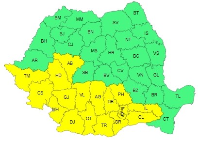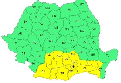 Potrivit meteorologilor, luni, în cea mai mare parte a Olteniei, Munteniei şi local în Dobrogea continentală, se vor înregistra temperaturi ridicate pentru această dată, iar maximele se vor situa în general între 33 şi 35 de grade. Local, va fi caniculă şi disconfort termic ridicat, indicele temperatură-umezeală (ITU) situându-se în jurul valorii de 80 de unităţi.