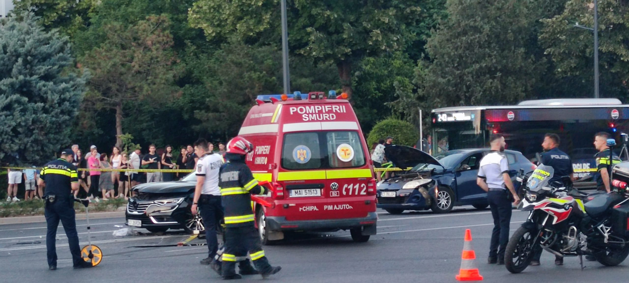În accident au fost implicate trei autoturisme și ambulanță SMURD în care se aflau în total șase persoane. O victimă a fost intubată și transportată în stare de inconștiență la spital,