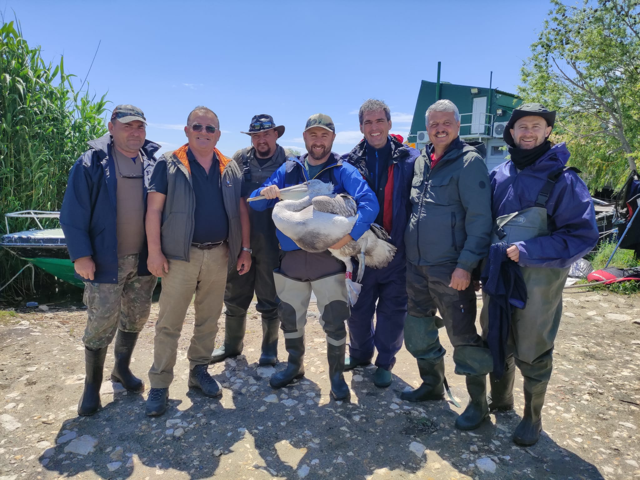 Acțiunea de echipare a exemplarelor tinere de pelican creț cu transmițătoare PGS-GSM reprezintă un efort comun al Administrației Rezervației Biosferei Delta Dunării, Institutului Național de Cercetare-Dezvoltare Delta Dunării și al Societății Ornitologice Române de a conserva pe termen lung această specie.