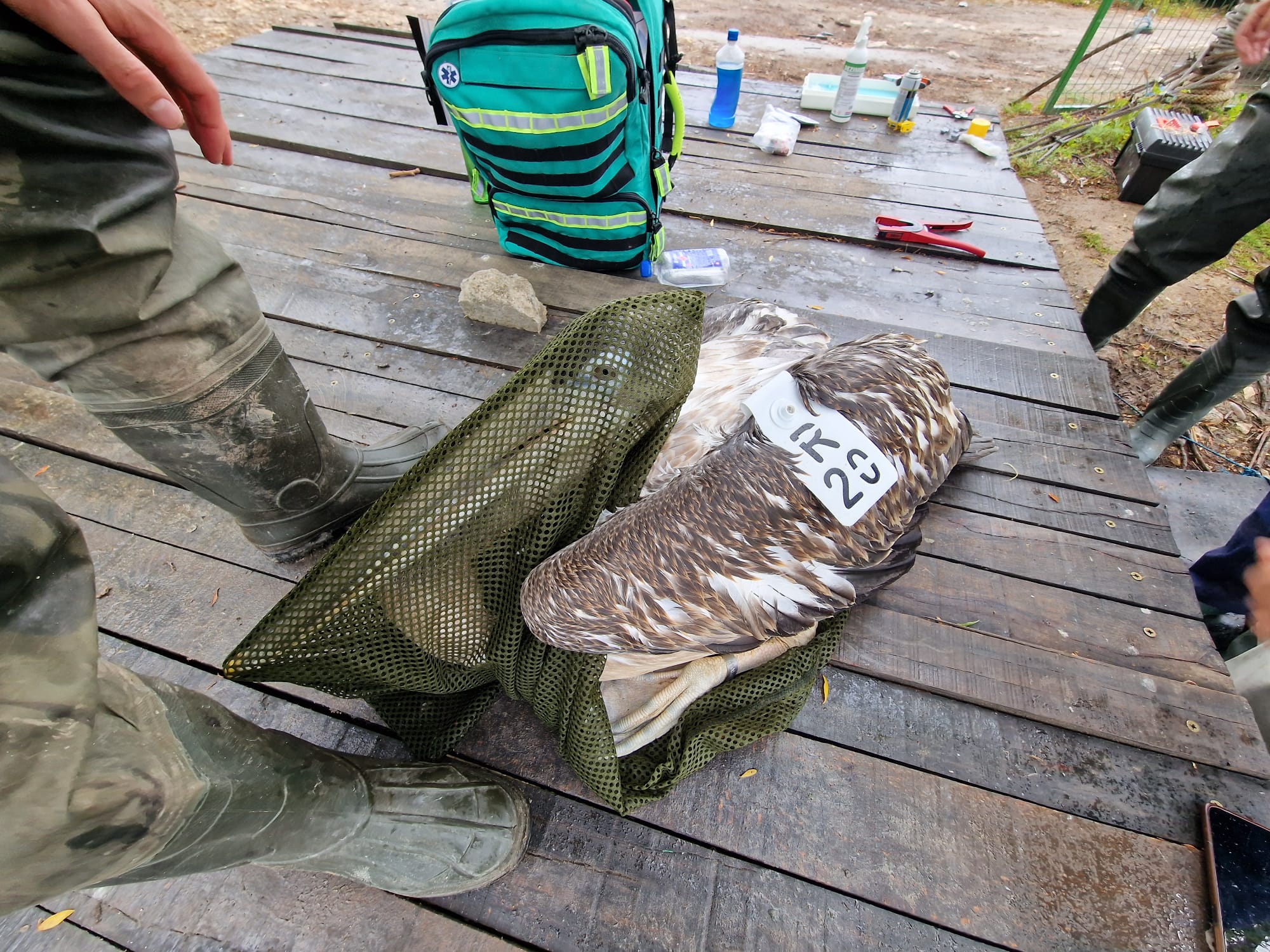 – Un total de 8 exemplare juvenile de pelican creț au fost capturate și marcate cu inele color (roșu-alb) care prezintă coduri unice de identificare la nivel internațional și se pot fotografia și citi de la distanță. Dintre acestea, 7 exemplare capabile de zbor au fost echipate cu transmițătoare GPS – GSM de tip patagial, care se montează pe aripa păsării și sunt alimentate cu baterie solară. Aceste dispozitive furnizează zilnic, la intervale prestabilite, un volum mare de date precise despre locurile frecventate și activitatea păsărilor, oferindu-ne o perspectivă mult mai detaliată asupra deplasărilor indivizilor și a potențialelor amenințări. Informațiile obținute ajută specialiștii să înțeleagă mai bine comportamentul și necesitățile acestei specii făcând posibilă elaborarea măsurilor de conservare eficiente și specifice pentru protejarea pelicanului creț.