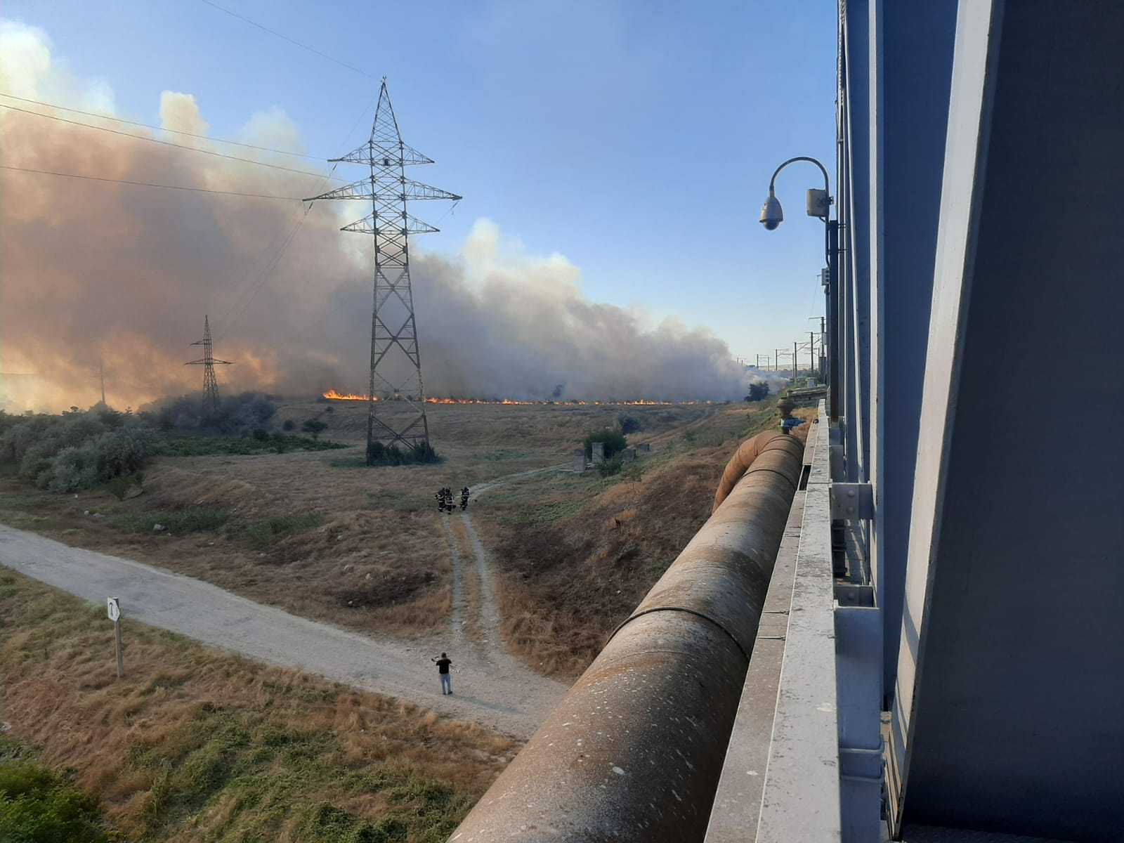 CFR: 10 trenuri de călători oprite temporar din cauza incendiului de vegetație din zona Basarabi – Dorobanțu
