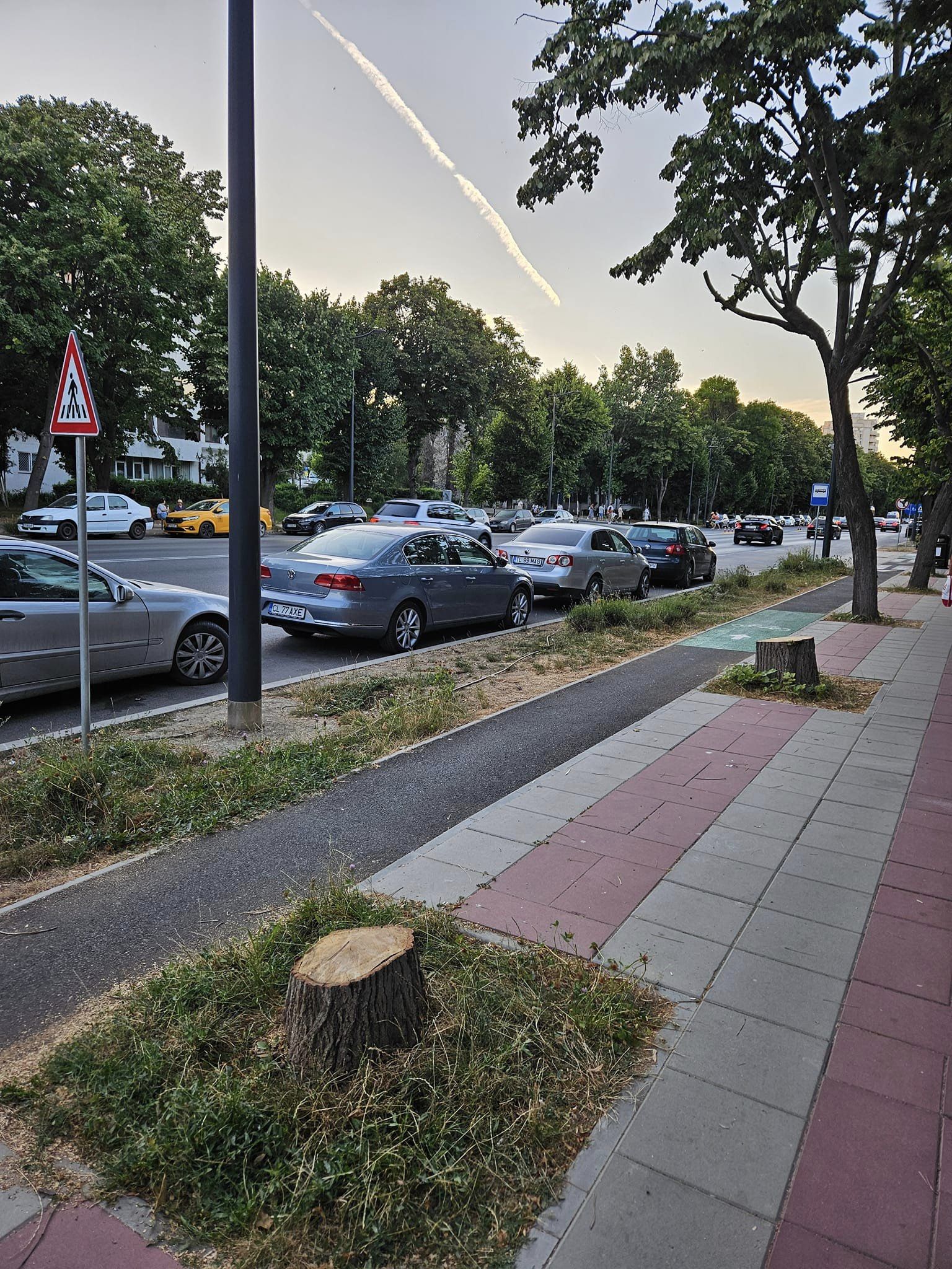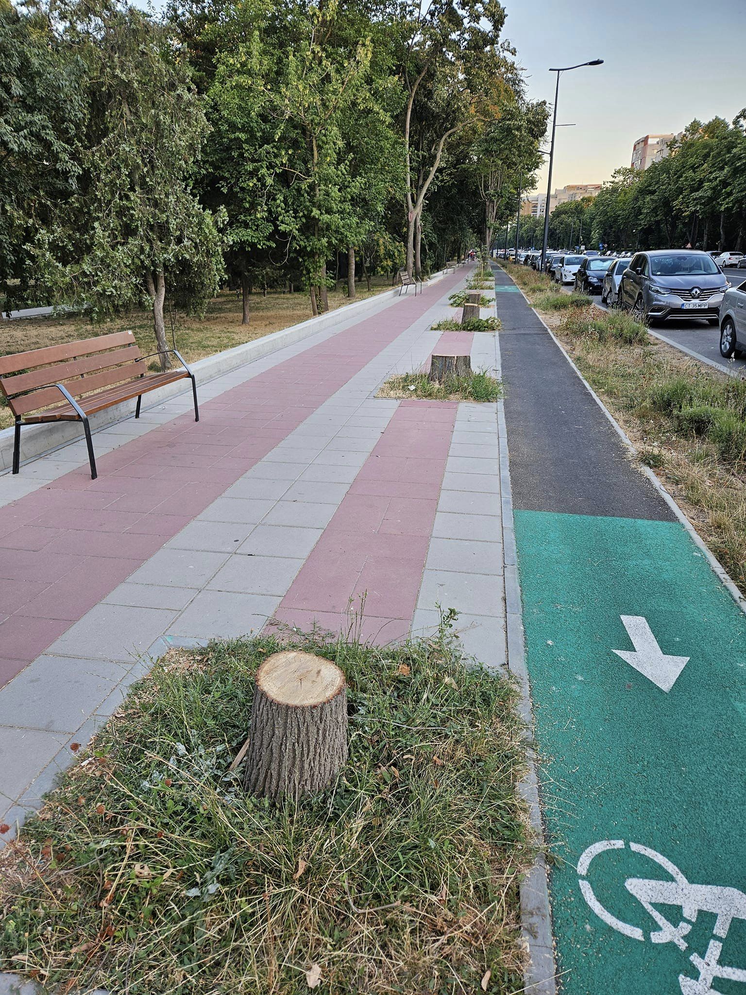 O constănțeancă a publicat, ieri, într-o postare pe Facebook, imagini cu 8 arbori tăiați de pe marginea bulevardului Alexandru Lăpușneanu.