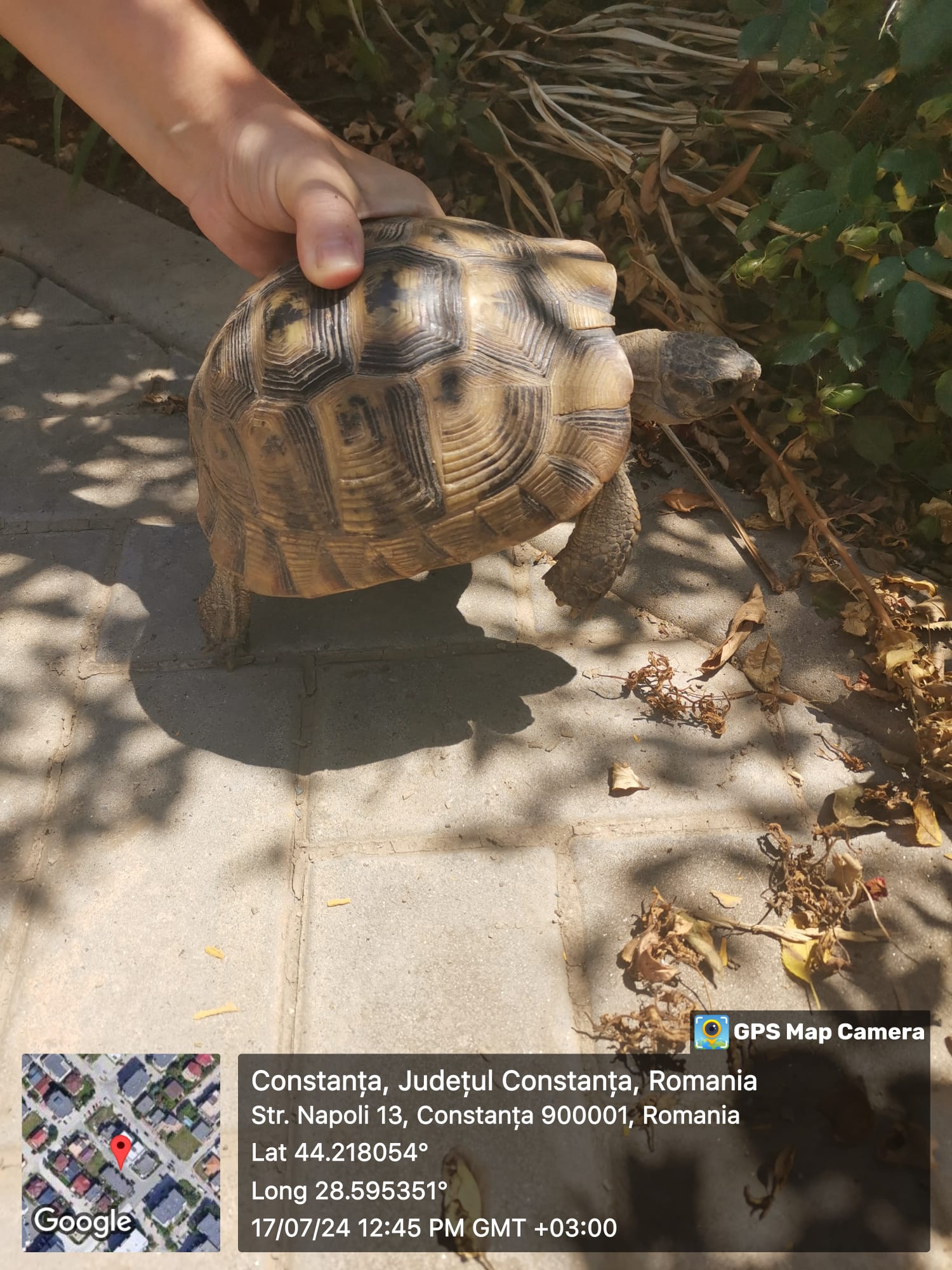 Garda de Mediu Constanța, împreună cu un reprezentant al IPJ Constanța – S.I.I.M. – Compartiment Protecția Animalelor, au identificat miercuri, cartierul Tomis Plus din Constanța un exemplar de broască țestoasă dobrogeană.