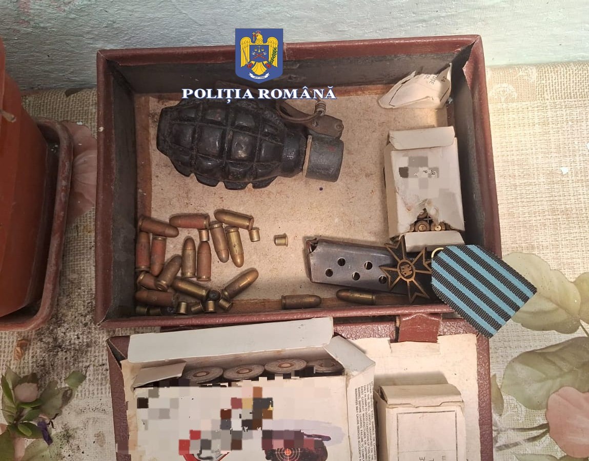 Polițiștii ajunși la fața locului au constatat faptul că cele sesizate se confirmă și au descoperit o grenadă defensivă activă și 69 de cartușe letale, ce erau deținute în mod ilegal.