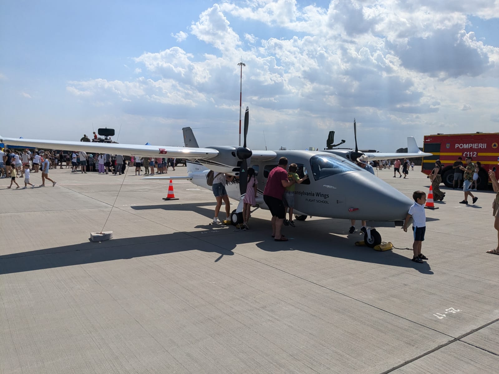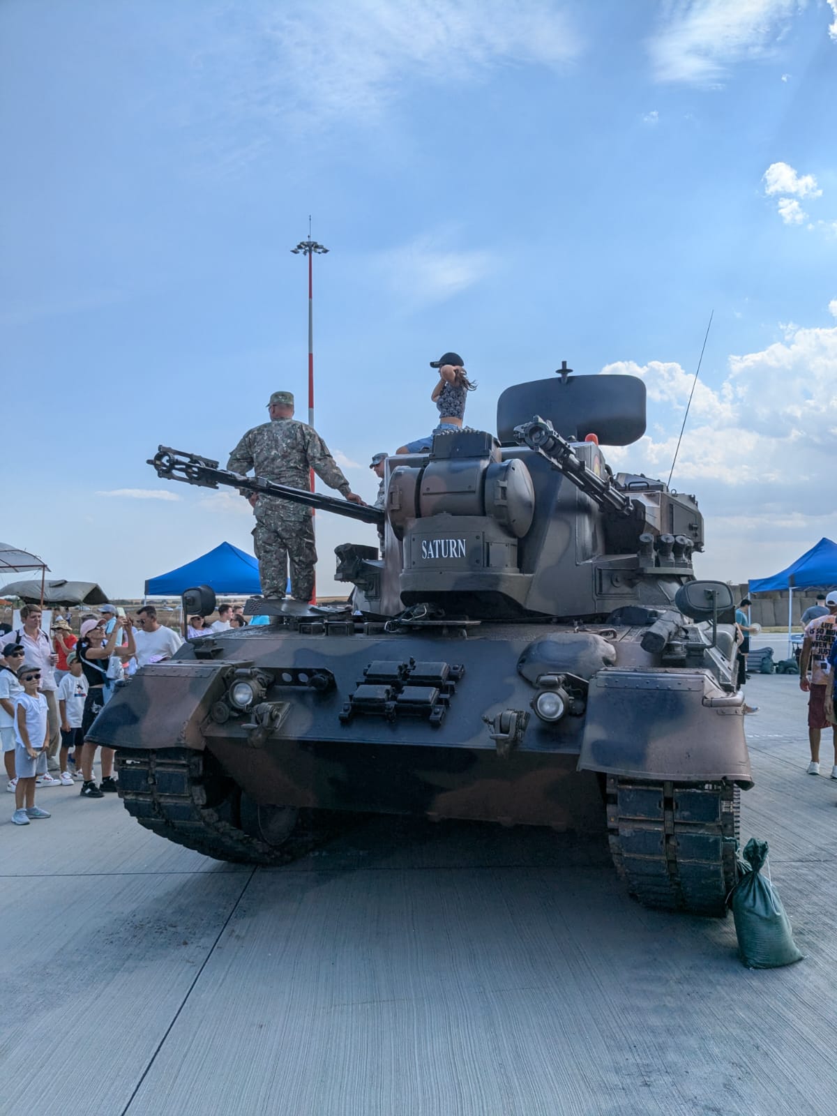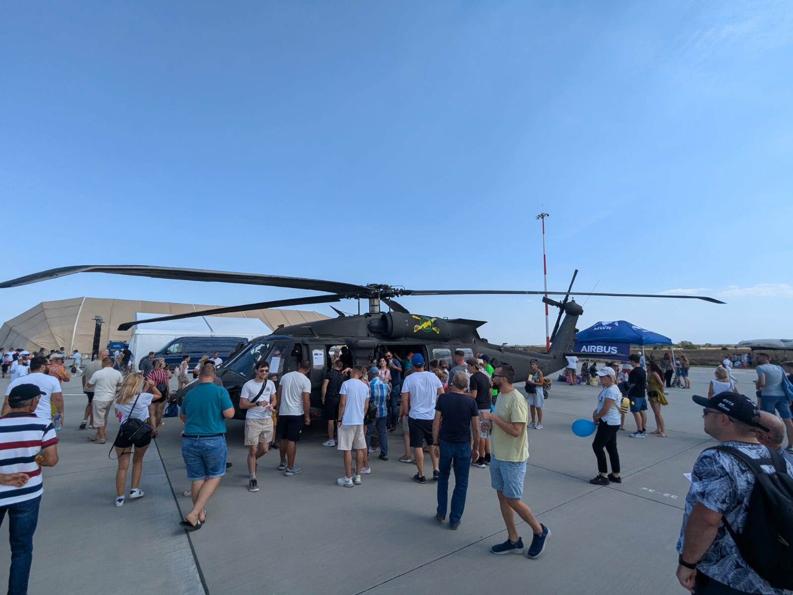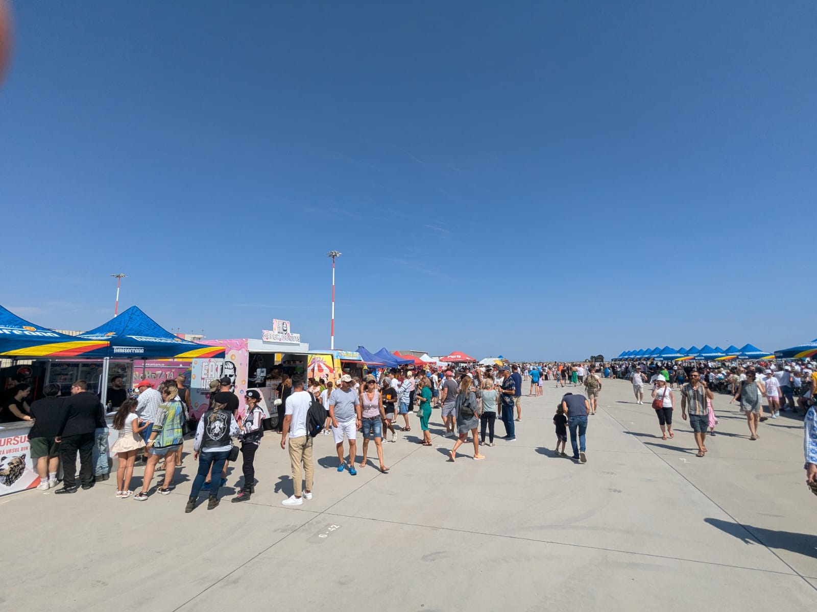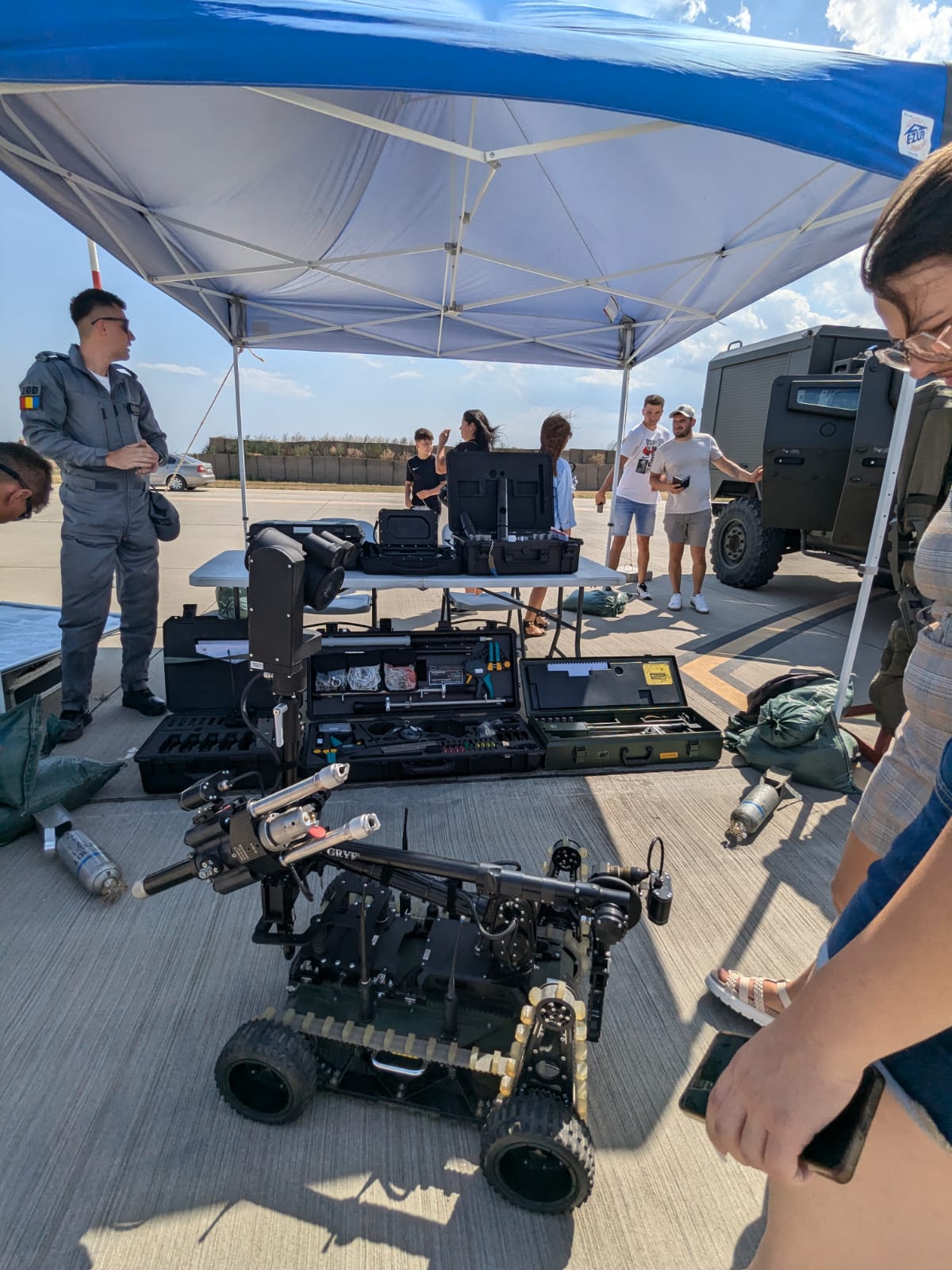 Pe platoul de lângă piste, organizatorii au pregătit o varietate de standuri pentru cei care sunt prezenţi la Black Sea Air Show 2024. De asemenea, nu lipsesc nici specialişti în domeniu care prezintă tehnica militară celor interesaţi.