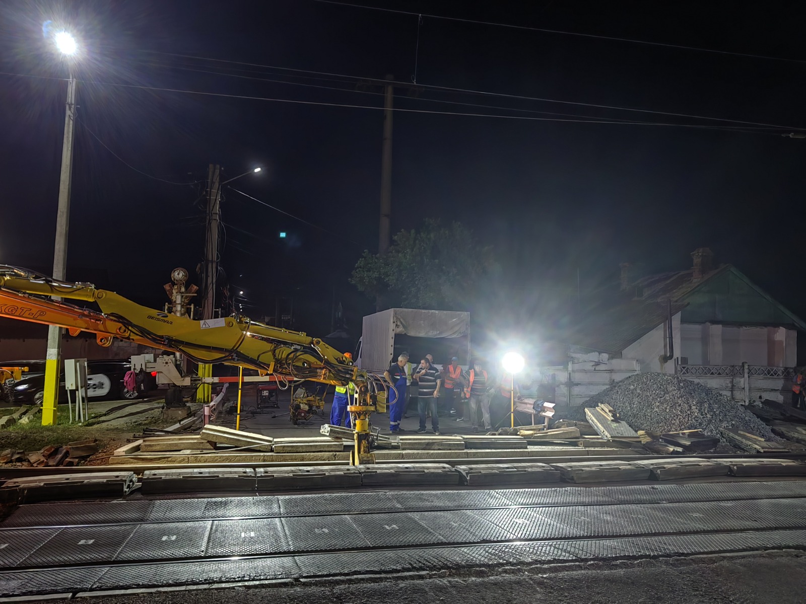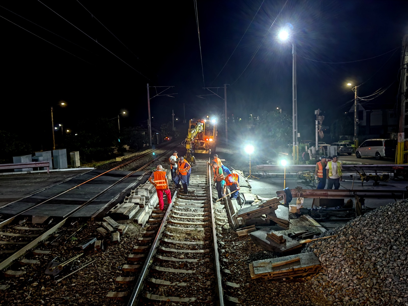 Angajații SRCF Constanța au executat următoarele lucrări: demontare dale elastice, scoaterea balastului dintre traversele din beton, înlocuirea la rând a traverselor din beton necorespunzătoare, rebalastarea căii, lucrări de fixare a nivelului și direcției căii prin buraj manual, consolidarea poziției căii prin buraj mecanizat cu utilaj Plasser completarea și compactarea pietrei sparte, montarea dalelor din cauciuc pentru reîntregirea trecerii la nivel cu calea ferată.