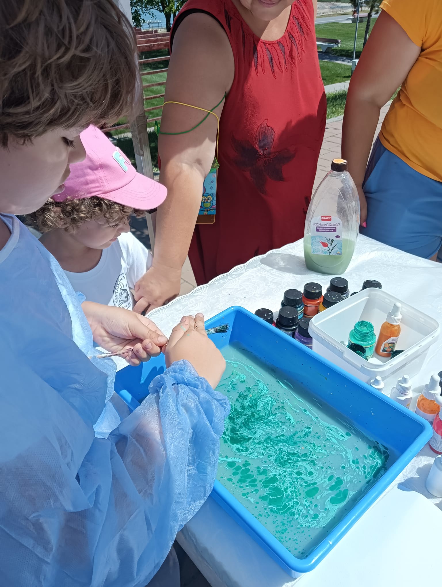 Unul dintre artiștii expozanți, Carmen Petrișor, a realizat tablouri pe apă, după o străveche tehnică originară din Imperiul otoman, împreună cu elevii de la Centrul Județean de Resurse și Asistență Educațională Constanța: