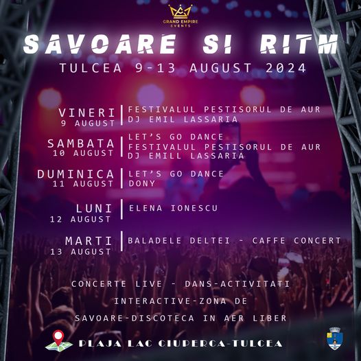 Festivalul „Savoare şi ritm” va fi urmat de „Tulcea Fest 2024”, eveniment desfăşurat în 14-15 august, care marchează Zilele municipiului Tulcea.