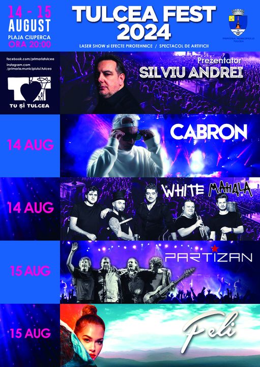 Programul include recitaluri susţinute de Cabron, White Mahala, Partizan şi Feli. Concertele vor fi însoțite de spectacole laser, efecte pirotehnice și proiecții pe ecrane gigant, iar în data de 15 august, tulcenii vor avea parte și de tradiționalul foc de artificii.