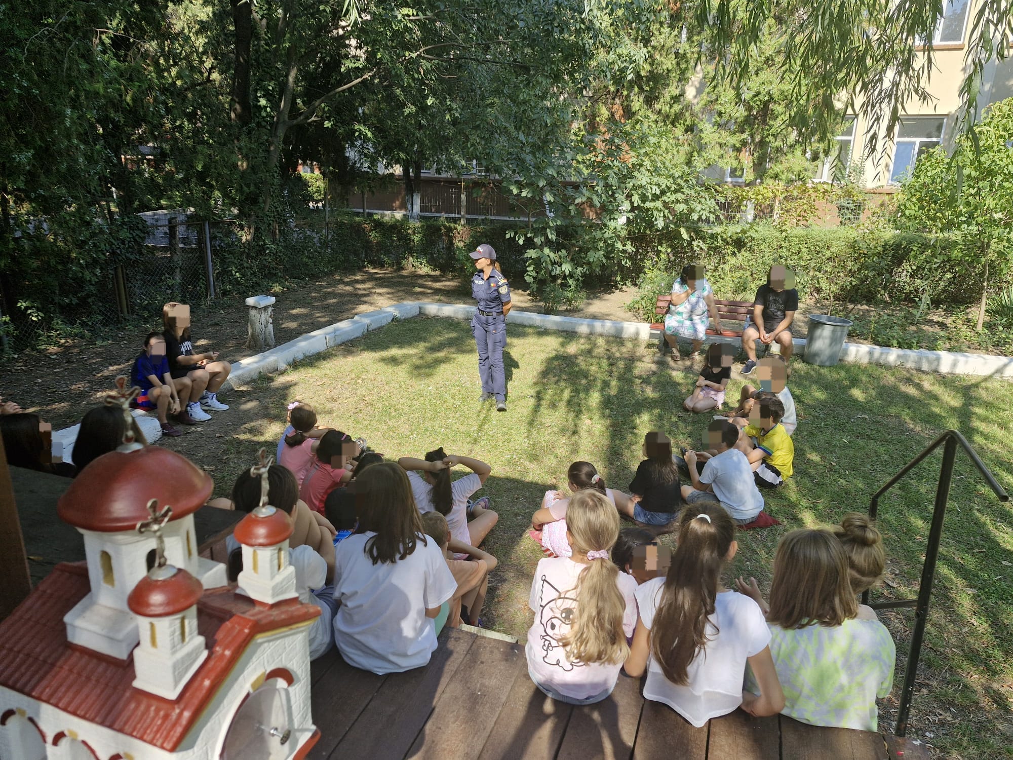 Astăzi, 13 august, polițiștii Serviciului Siguranţă Şcolară şi Prevenirea Criminalităţii au desfășurat activități educativ-preventive, în rândul copiilor prezenți la școala de vară a Parohiei Capelei Militare Sfinții Împărați Constantin și Elena III, din municipiul Constanța.