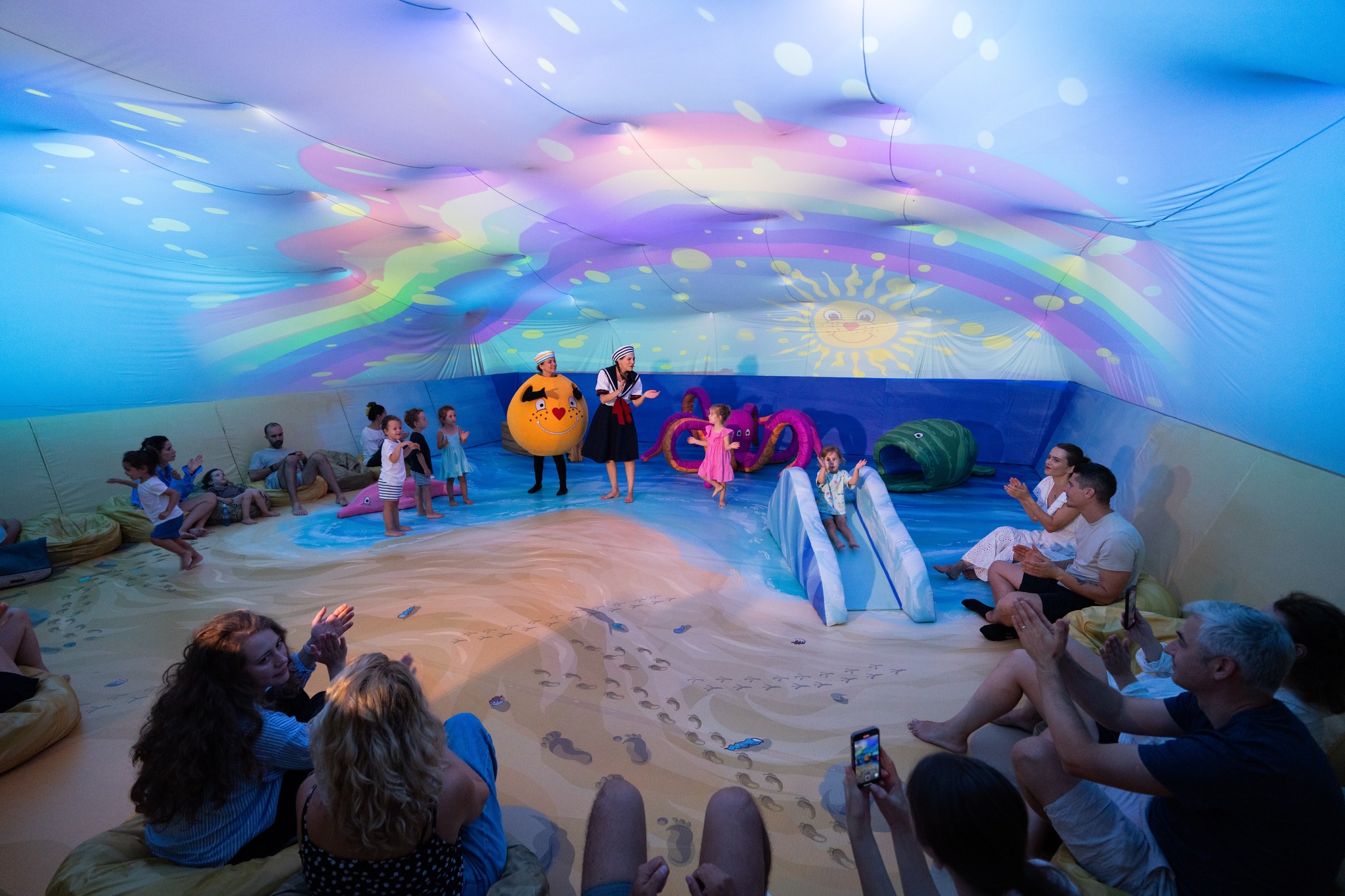 Timp de cinci zile, de miercuri, 14 august, până duminică, 18 august, în sala Ovidiu a Hotelului Continental Forum, Opera Comică pentru Copii le-a oferit micuților 20 de reprezentații, a câte 40 de minute fiecare, dintr-un spectacol senzorial deosebit, în cadrul SEAS 2024.