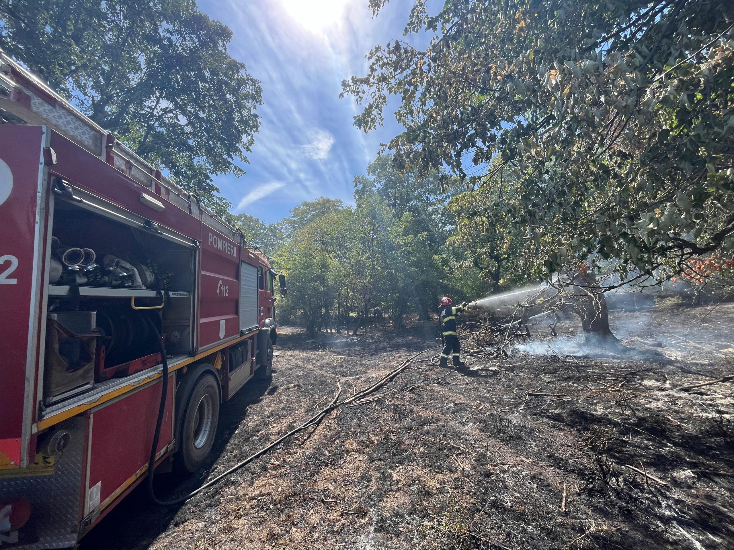 Ajutați de rangeri ai ocolului silvic și de un utilaj agricol cu plug, pompierii tulceni au acționat și pentru stingerea incendiului izbucnit în fondul forestier Frecăței, unde flăcările au mistuit o zonă de pădure: