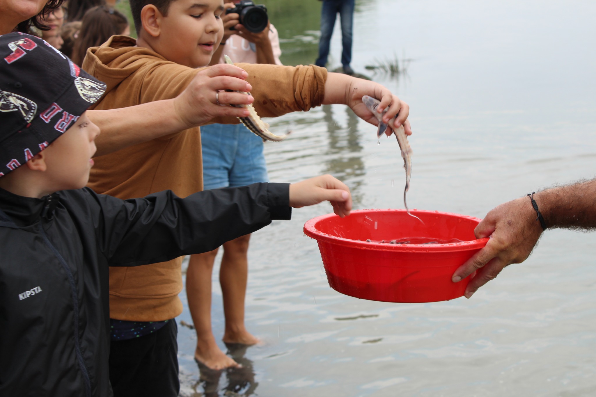Alături de reprezentanții instituțiilor centrale și locale de mediu, dar și ai autorităților de control, au participat elevi însoțiți de părinți și cadre didactice, care au avut bucuria de a boteza puii de sturioni înainte de a-i elibera în Fluviul Dunărea.