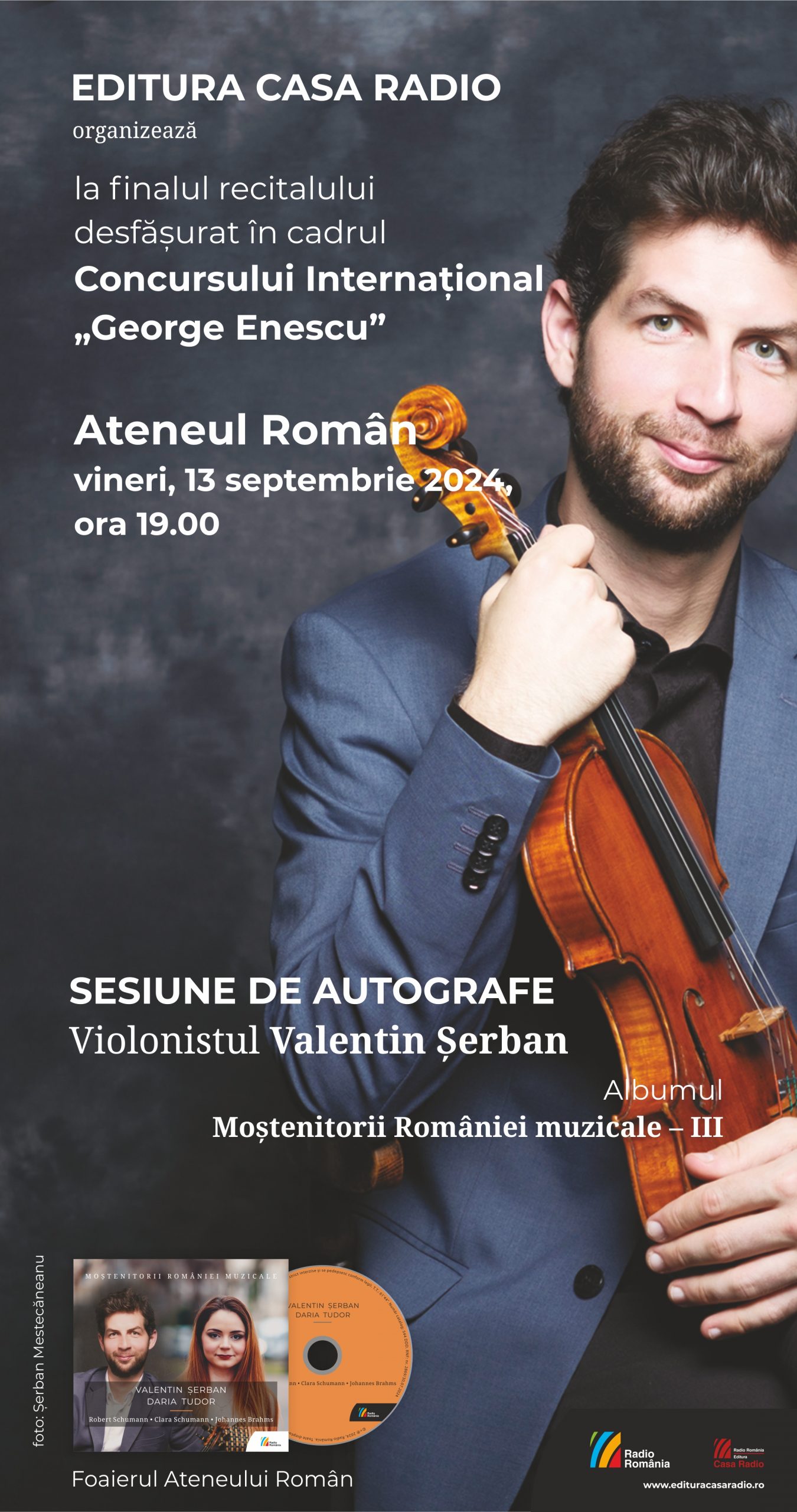 Editura Casa Radio – nouă apariție muzicală: Moștenitorii României Muzicale (III) – VIOLIN IN LOVE, Valentin Șerban – vioară, Daria Tudor – pian
