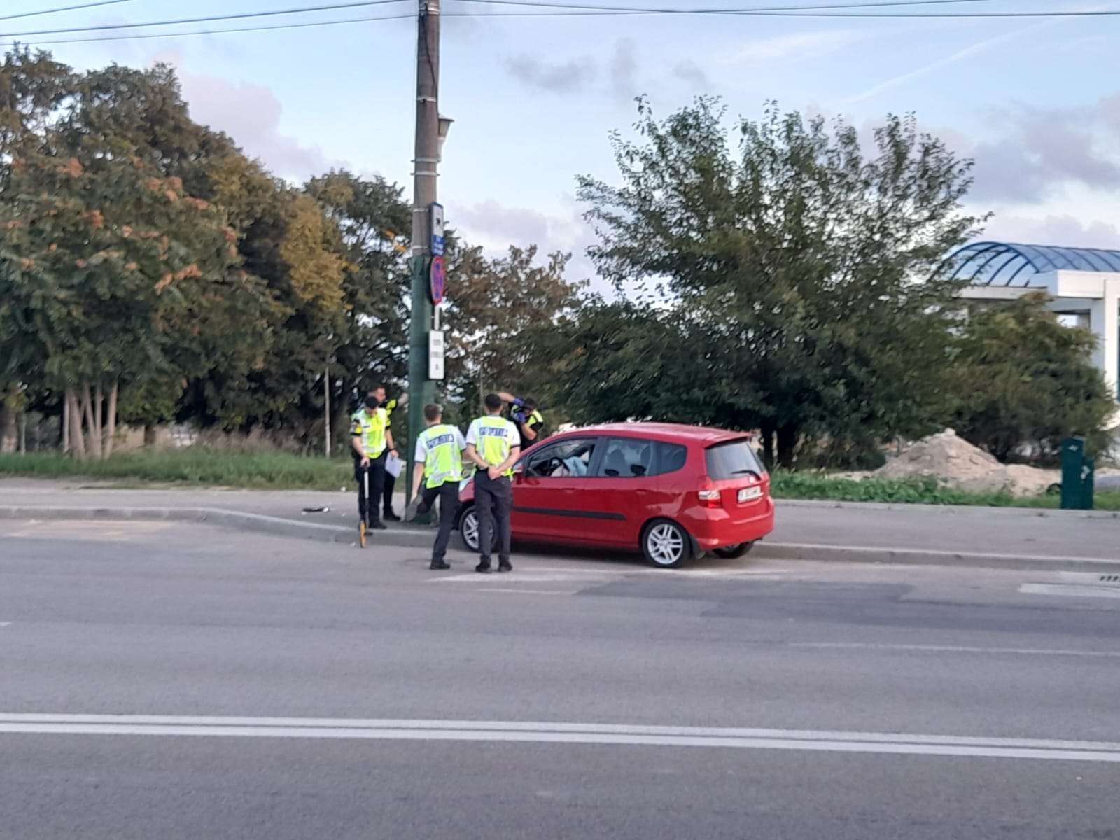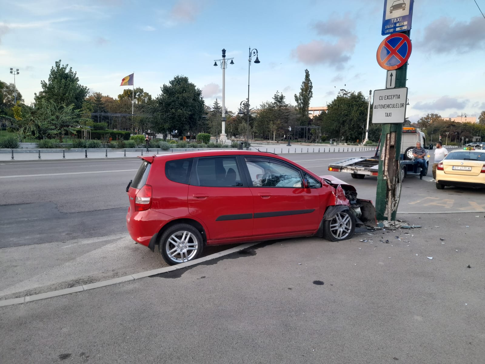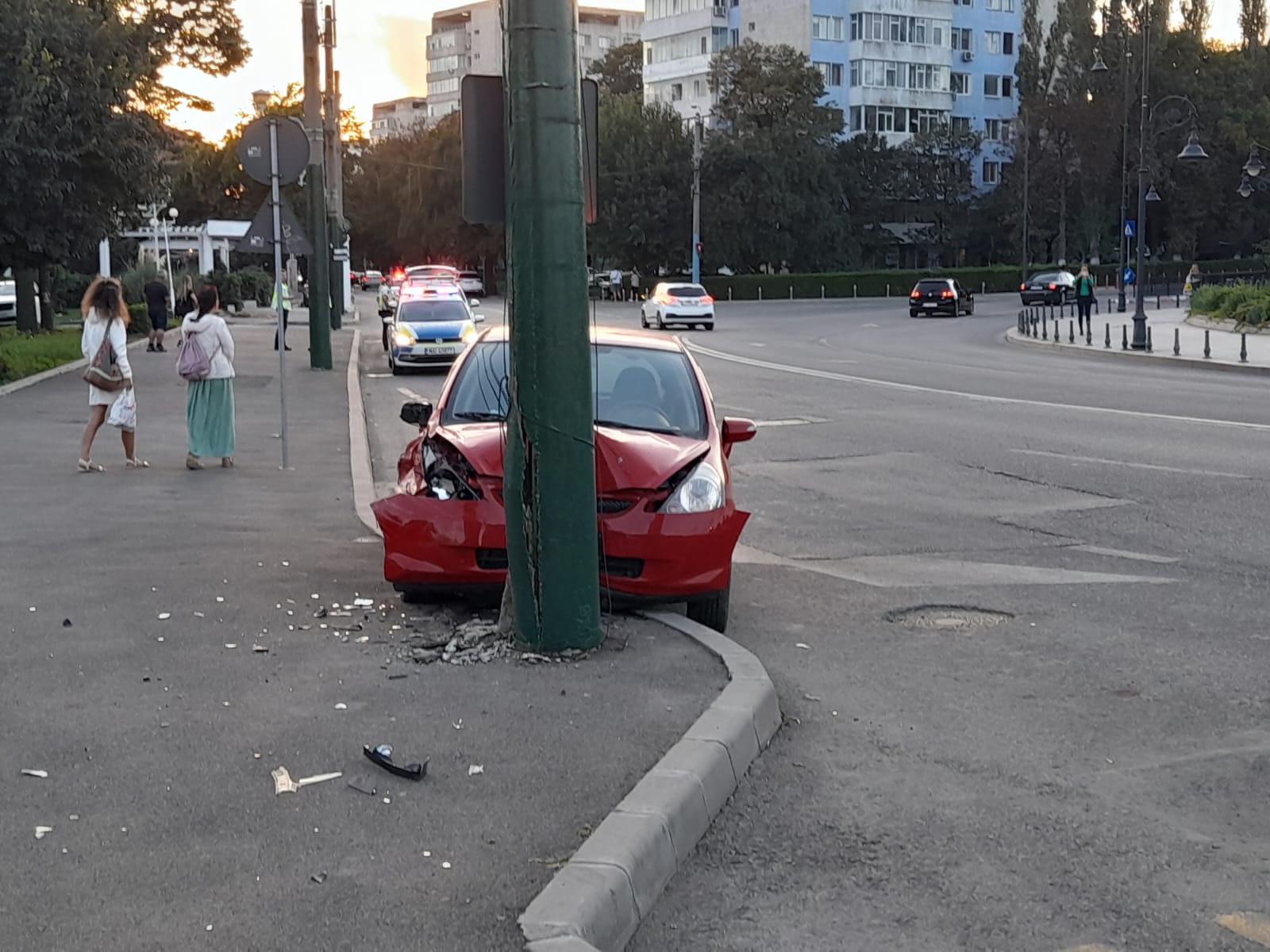 FOTO | Accident rutier pe strada Traian din Constanța. Un autoturism s-a izbit de un stâlp
