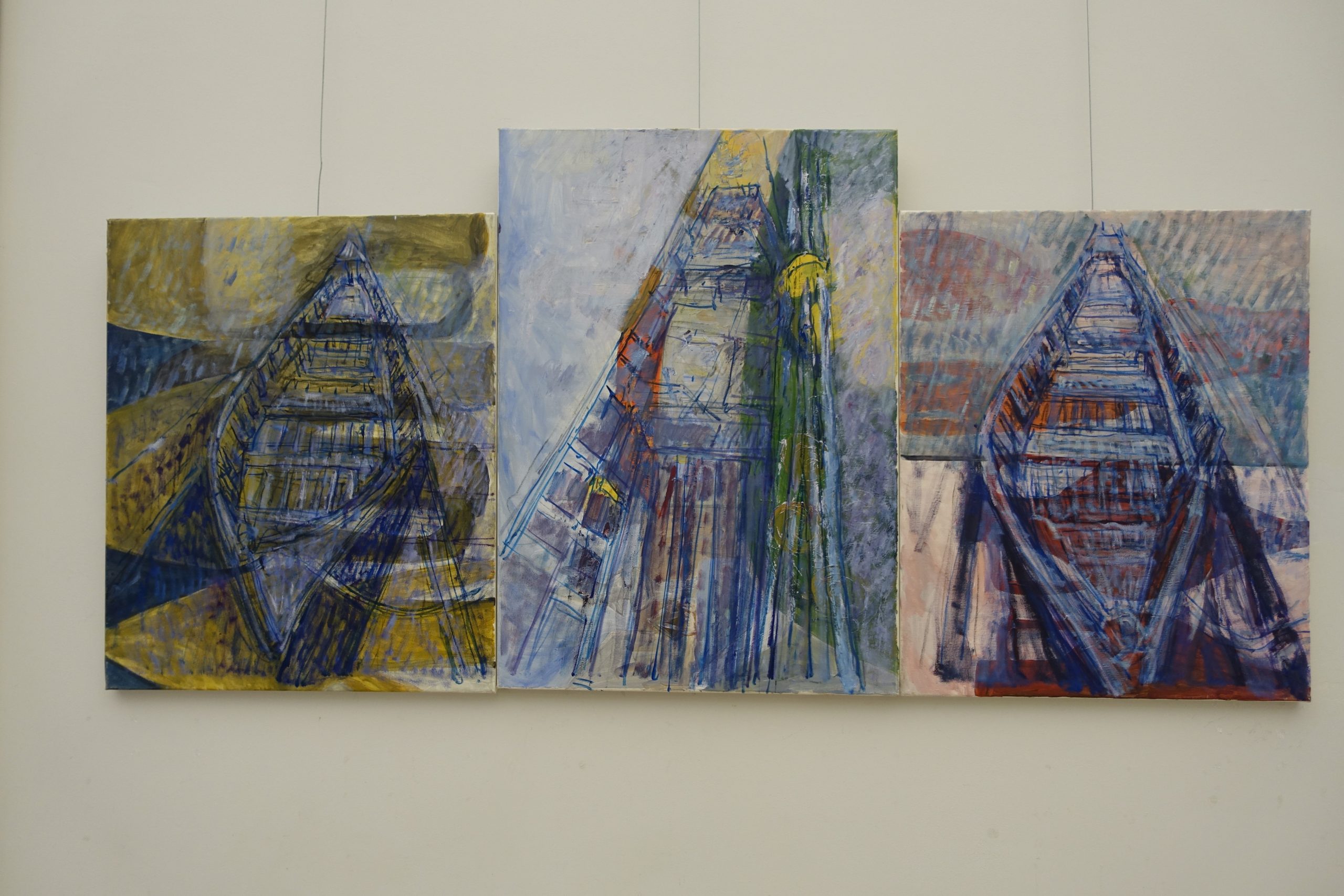 Picturile profesorului Gheorghe Caruțiu, reprezentând o lotcă, o prezentau într-o perspectivă care trecea dintr-un spațiu real într-unul abstract. Formele lotcii reale, inspirate din cele ale valurilor, se prelungeau spre un orizont aparținând altui spațiu, printr-o geometrie transdimensională.