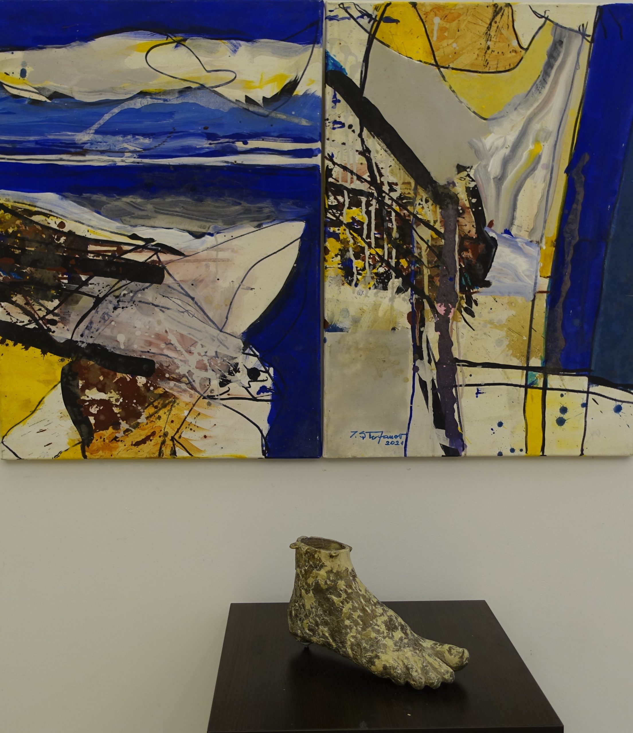 Dipticul pictorului Ignat Ștefanov crea o vie stare a străbaterii apei, mediu deopotrivă germinal și abstract. Culorile aparent reci ne trimeteau spre o trezire, spre o conștiență și conștiință pe care să le descoperim în acest sacru mediu lichid.