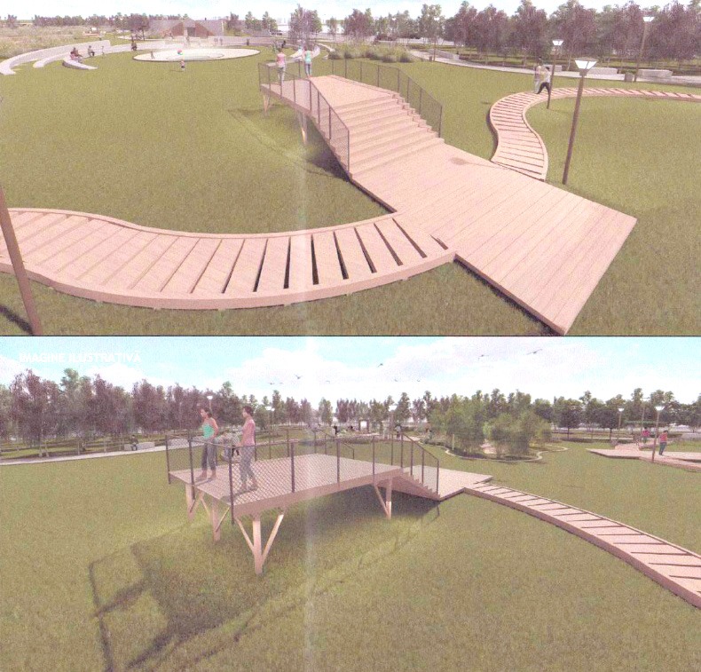 Spațiul verde va fi amenajat astfel încât să ofere o imagine dinamică. Astfel, în cadrul parculul, vom întâlni diferite tipuri de amenajări care implică vegetaţie de talie diversă, precum: arbori, arbuşti decorativi, plante perene, plante ierboase și gazon. Vegetaţia aleasă este valoroasă atât din punct de vedere ecologic, cât și peisagistic, creând un spatiu de odihnă şi relaxare pentru utilizatori. Toate speciile care se vor planta sunt autohtone. De asemenea, în parc, va fi amenajat și un sistem de irigații. Elementele de mobilier urban alese au rolul de a întregi imaginea spațiului verde. Obiectele alese vor fi funcționale, vor deservi utilizatorii și nu vor crea contrast cu restul ambianței. Dotările alese sunt minimaliste, din materiale naturale, culori plăcute pentru a adăuga un plus atmosferei locului. Se vor amplasa bănci, hamace, coșuri de gunoi, cișmele, rasteluri de biciclete, grătare de arbori etc. Valoarea totală a proiectului este de 18.990.073, 26 lei fără TVA.