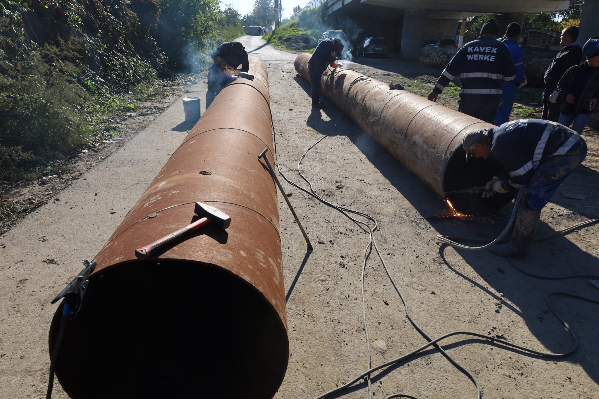 Imediat ce aceste lucrări vor fi finalizate, lucrătorii societății vor pune pe poziție segmentele și vor executa lucrările de cuplare la sistemul existent. După conectare, se vor efectua toate manevrele de vane necesare pentru umplerea instalației și reluarea furnizării apei către consumatori.