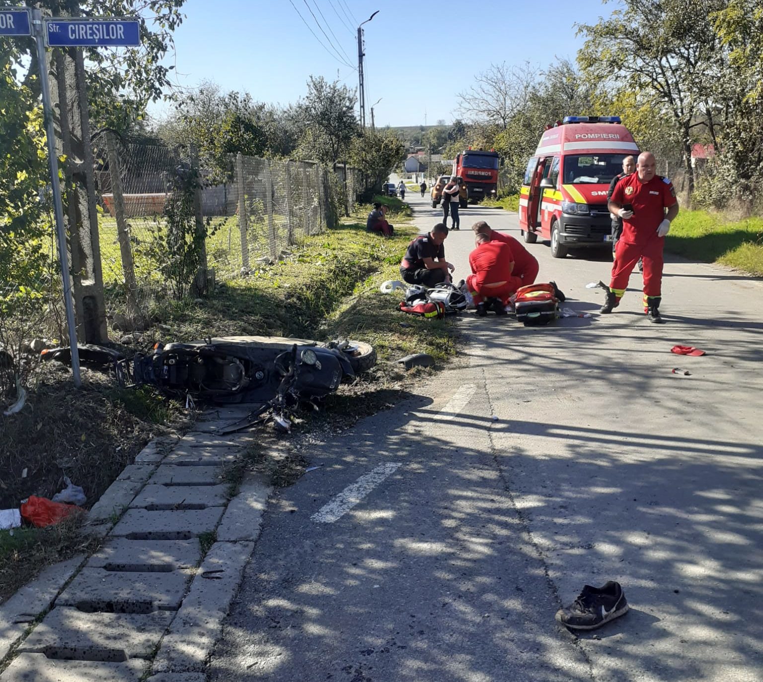 ISU Dobrogea a fost solicitat să intervină în localitatea Chirnogeni, județul Constanța, în urma unui accident rutier în care au fost implicate o trotinetă și o mașină.
