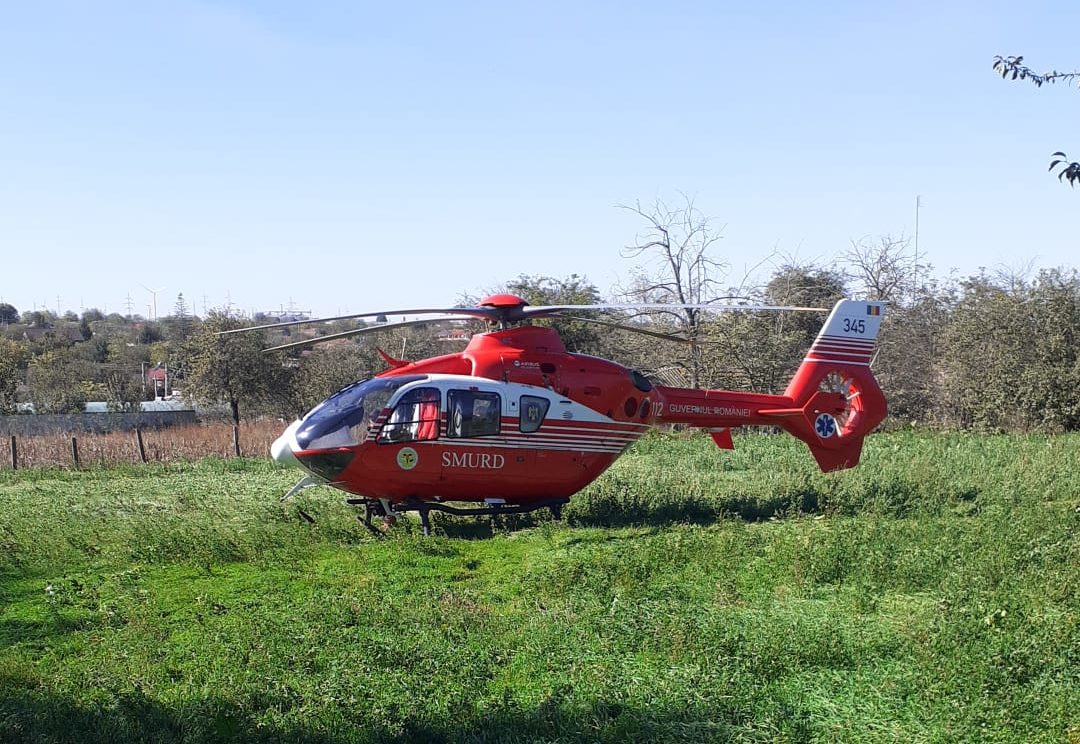 Elicopterul SMURD a intervenit în Chirnogeni, la o persoană inconștientă. Victima, care se afla pe o trotinetă, a intrat într-o mașină