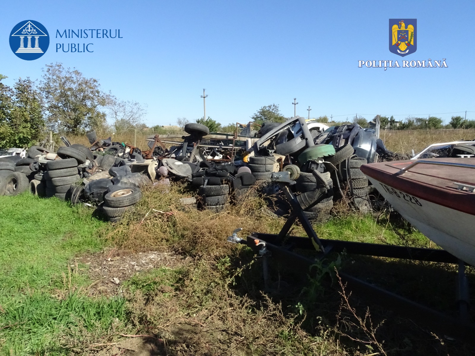 La percheziții, poliţiştii au descoperit şi ridicat, în vederea probării activităţii infracţionale, 43 de autoturisme scoase din uz, 4 bărci cu motor, 645 de litri de ulei uzat, 7.980 de kg de deşeuri feroase, 577 de anvelope uzate, 1.750 de kg de deşeuri din plastic, 9 motoare provenite de la autovehicule dezasamblate şi 80 de kg de deşeuri textile.