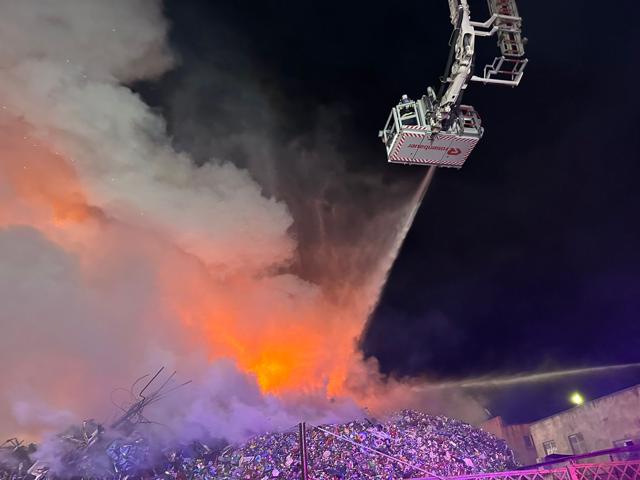 Au ars aproximativ 300 de tone de deșeuri metalice, plastice și textile aflate pe o suprafață de aproximativ 500 mp.