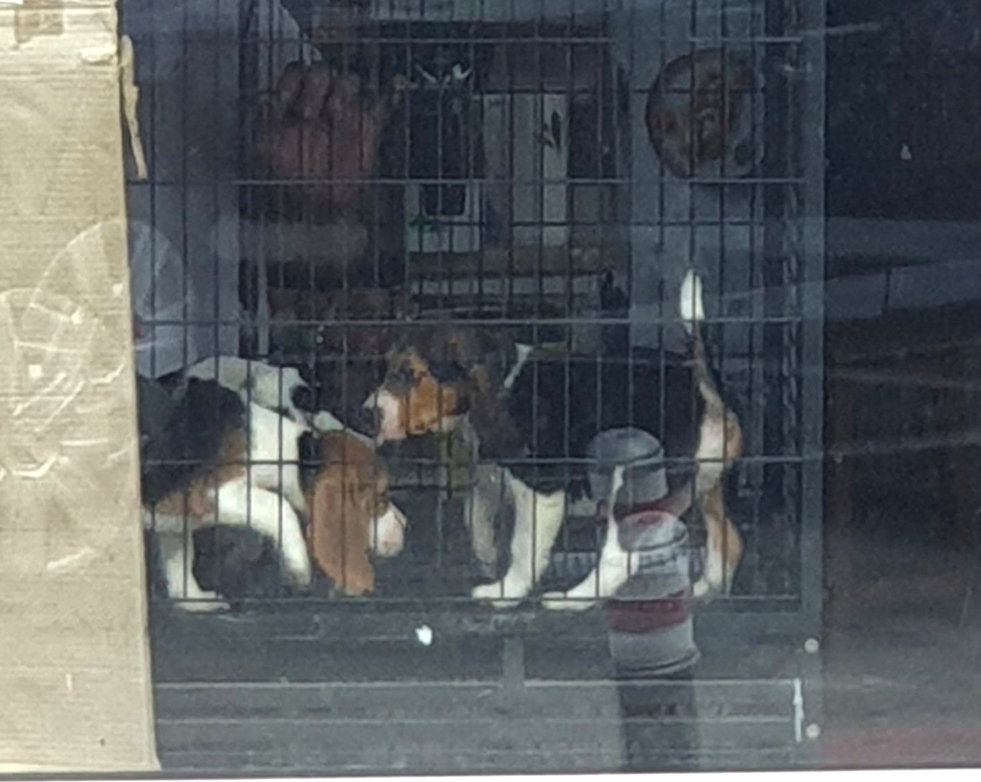 Magazinul, fără firmă la intrare, comercializează de multă vreme câini de rasă, pe care îi ține în condiții improprii: cățeii sunt expuși în cuști tapetate cu hârtie, fără boluri de apă sau hrană, iar cei de talie mică sunt ținuți inclusiv în vitrine, în bătaia soarelui.