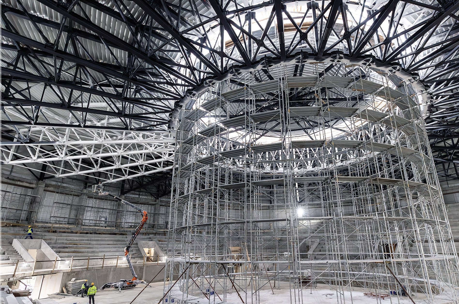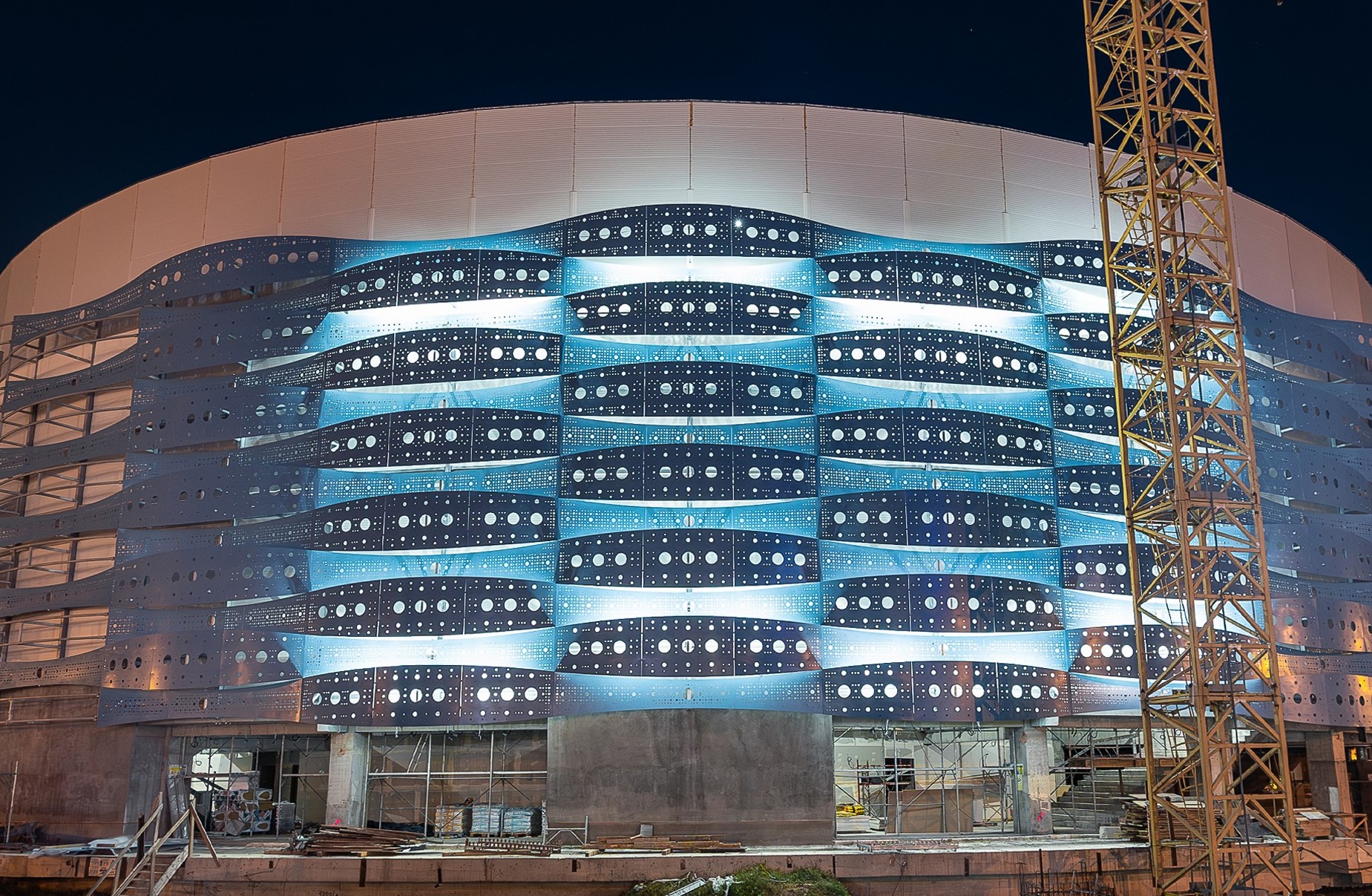 „Am realizat primele teste pentru iluminatul arhitectural, care ne oferă o imagine asupra impactului estetic final al clădirii și dezvăluie câteva detalii ale acestui proiect deosebit. Totodată, am finalizat lucrările la fațada decorativă, structura metalică și panourile sandwich, iar acoperișul a fost montat în totalitate.”