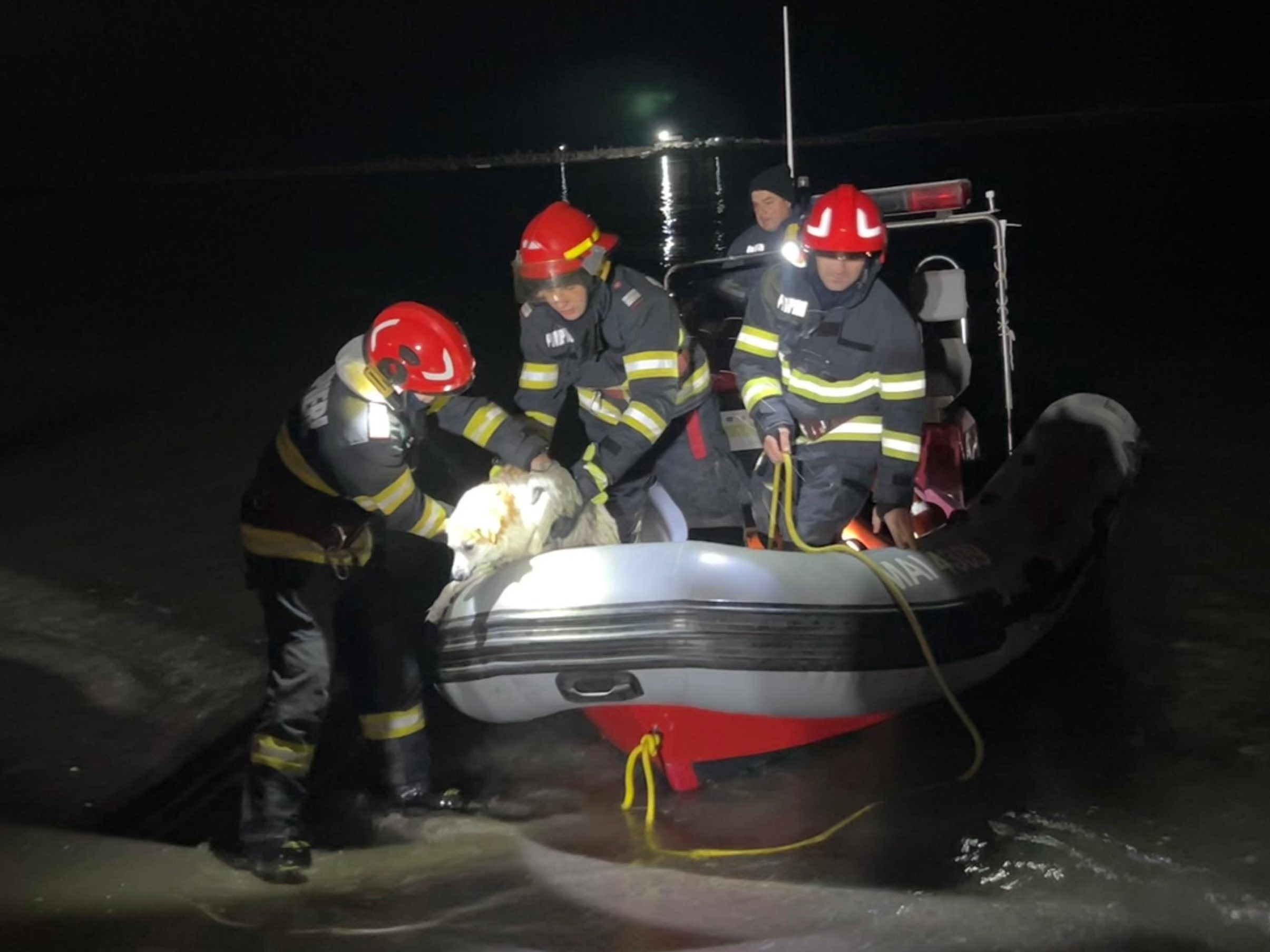Datorită intervenției rapide a pompierilor, câinele a fost adus în siguranță la țărm.