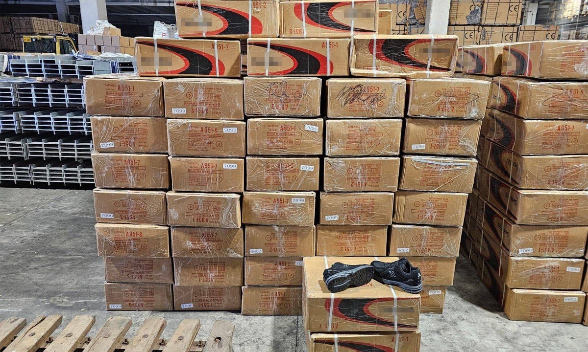 În containerul sosit din China, oamenii legii au descoperit peste 9.000 de perechi de încălțăminte sport.