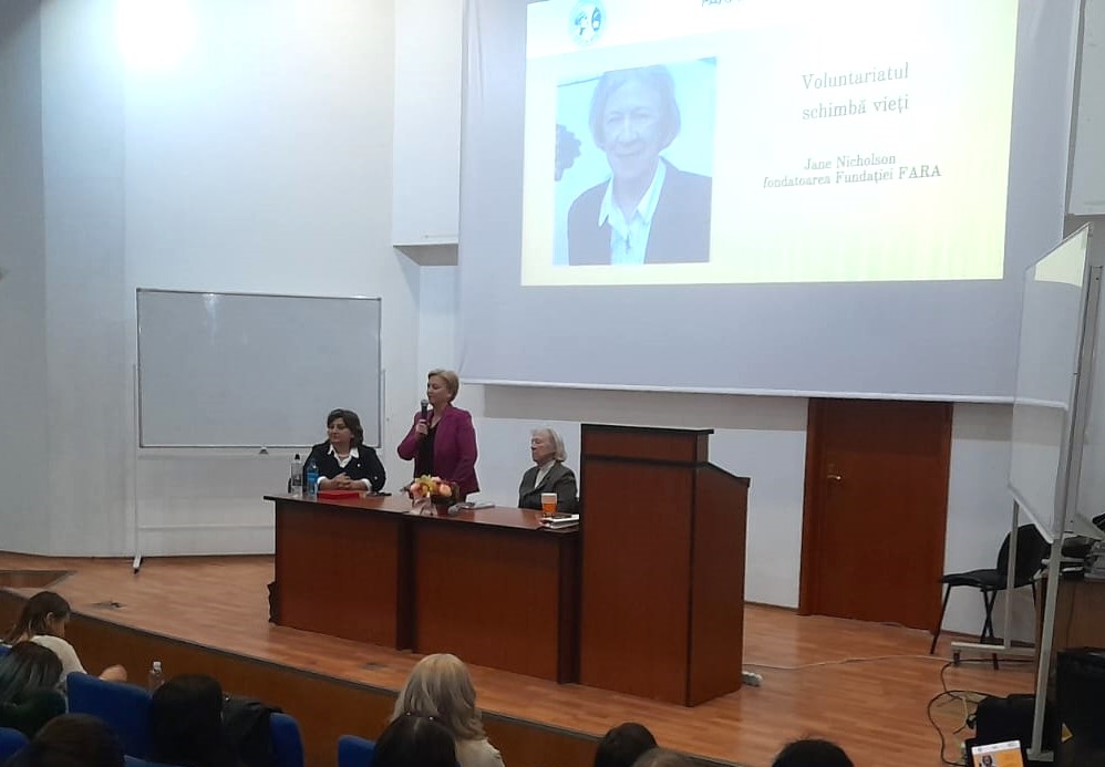 Jane Nicholson, prima voluntară care a venit în sprijinul orfanilor români, imediat după Revoluție, a ajuns miercuri la Constanța și le-a vorbit studenților de la Facultatea de Psihologie și Științele Educației despre viața sa și despre Fundația FARA al cărei fondator este și prin intermediul căreia a ajutat mii de copii și adulți. Își dorește ca acțiunile sale să-i inspire pe cât mai mulți români, iar tinerii studenți din Constanța să facă voluntariat în căminele familiale din Suceava și din București pe care le coordonează, după cum i-a mărturisit Silviei Pascale.