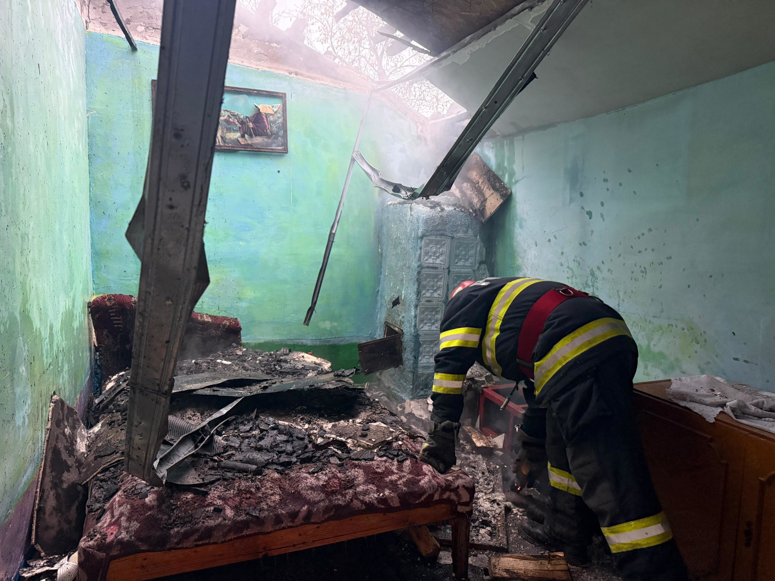 Județul TULCEA: O casă din localitatea Niculițel, cuprinsă de flăcări