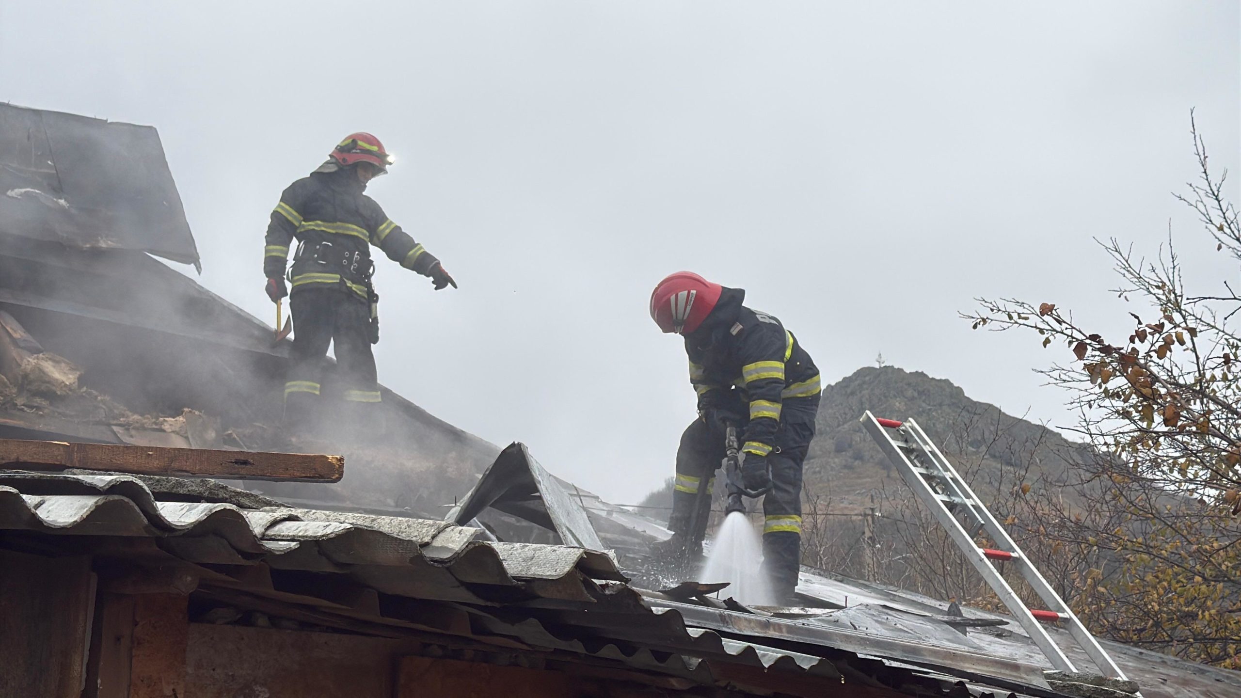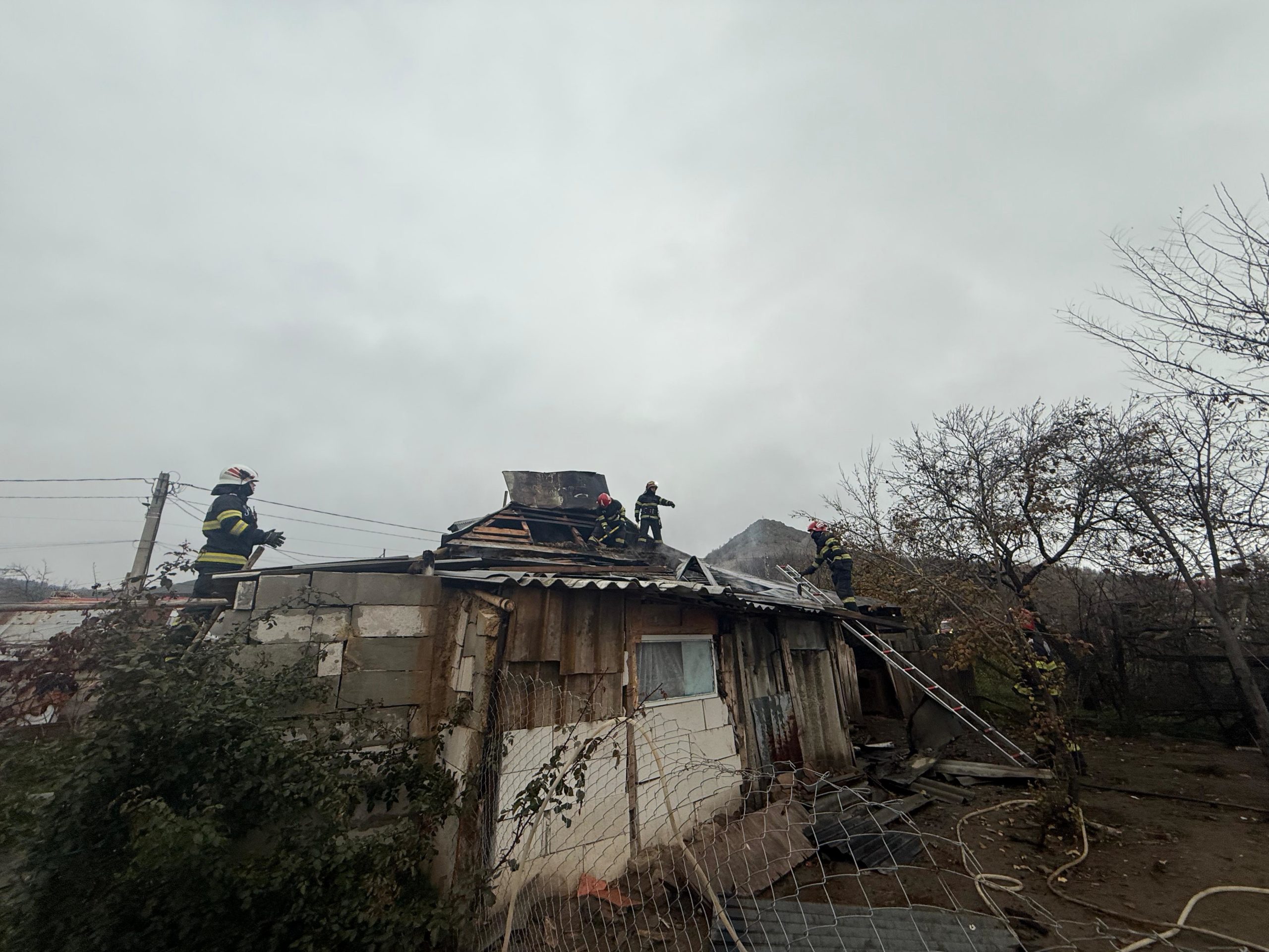 La sosirea forțelor de intervenție, incendiu se manifesta la nivelul acoperișului locuinței, existând riscul ca focul să se extindă la întreaga casă.