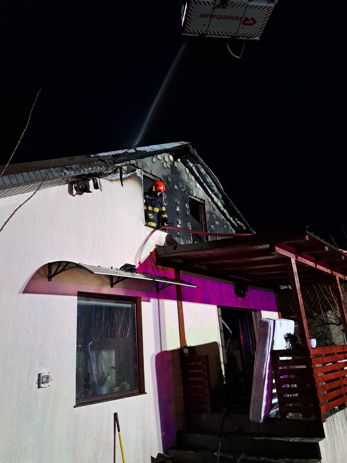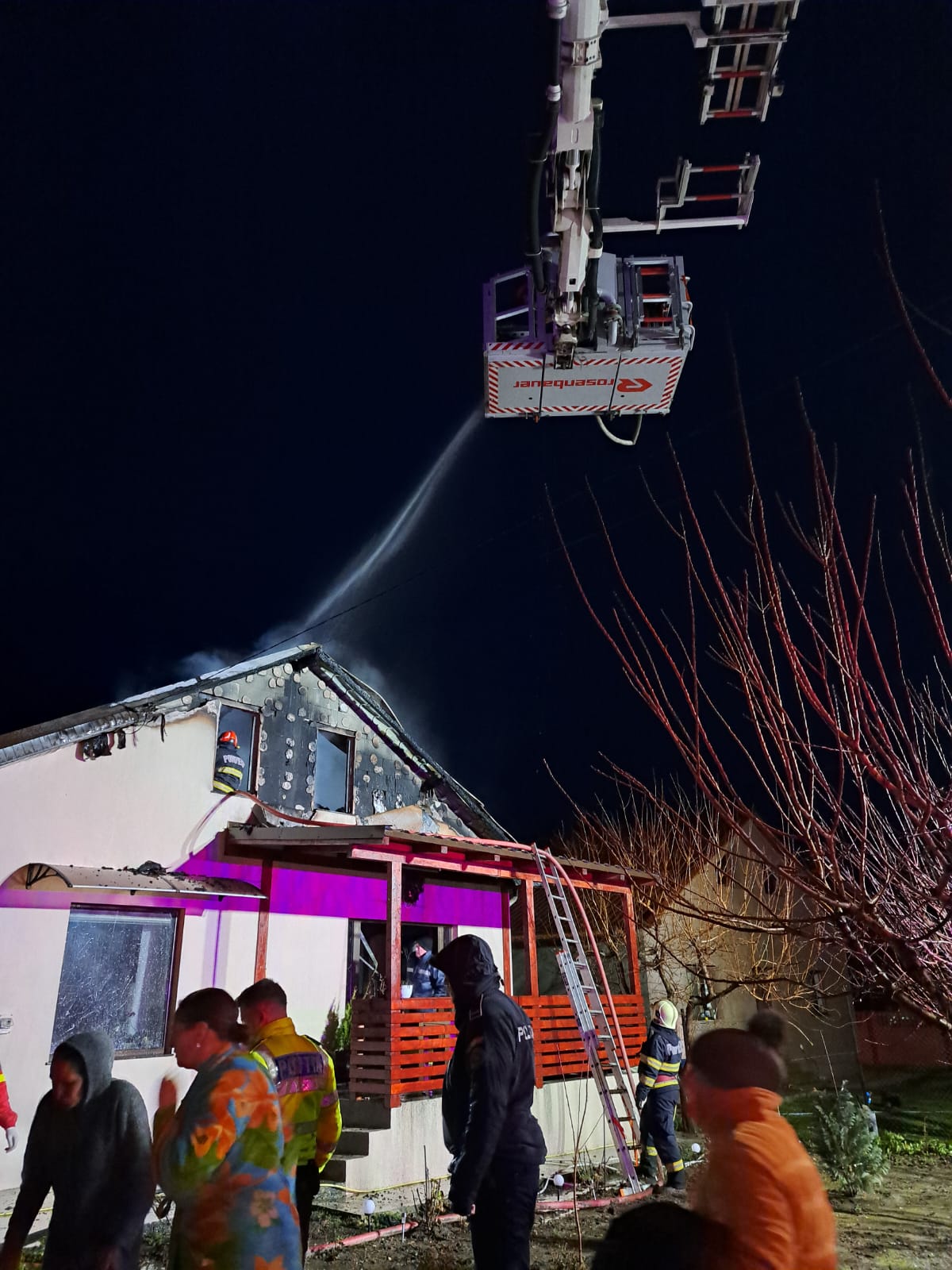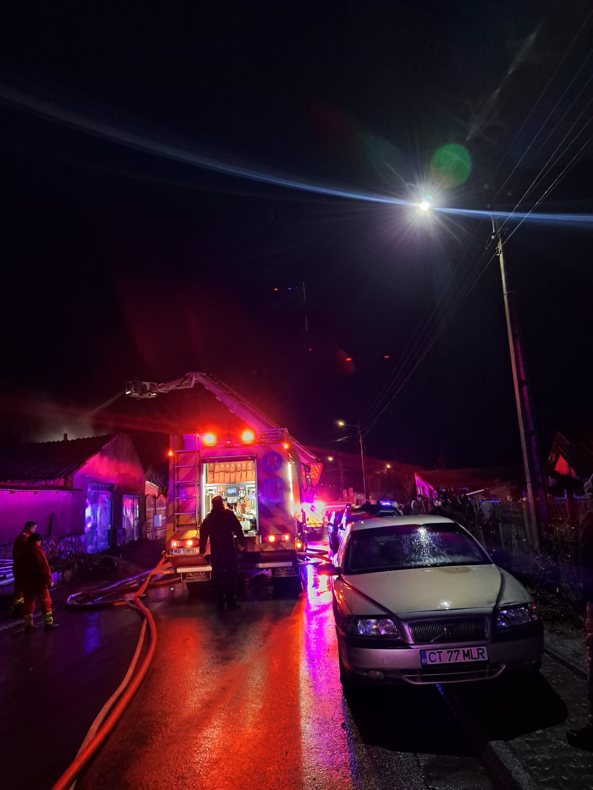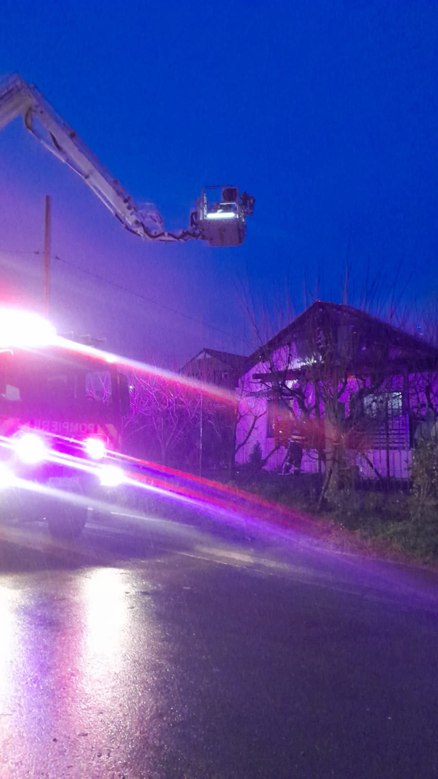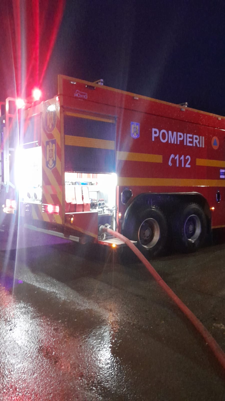 La fața locului au intervenit cu trei autospeciale de stingere cu apă și spumă, o autoplatformă și o ambulanță SMURD.