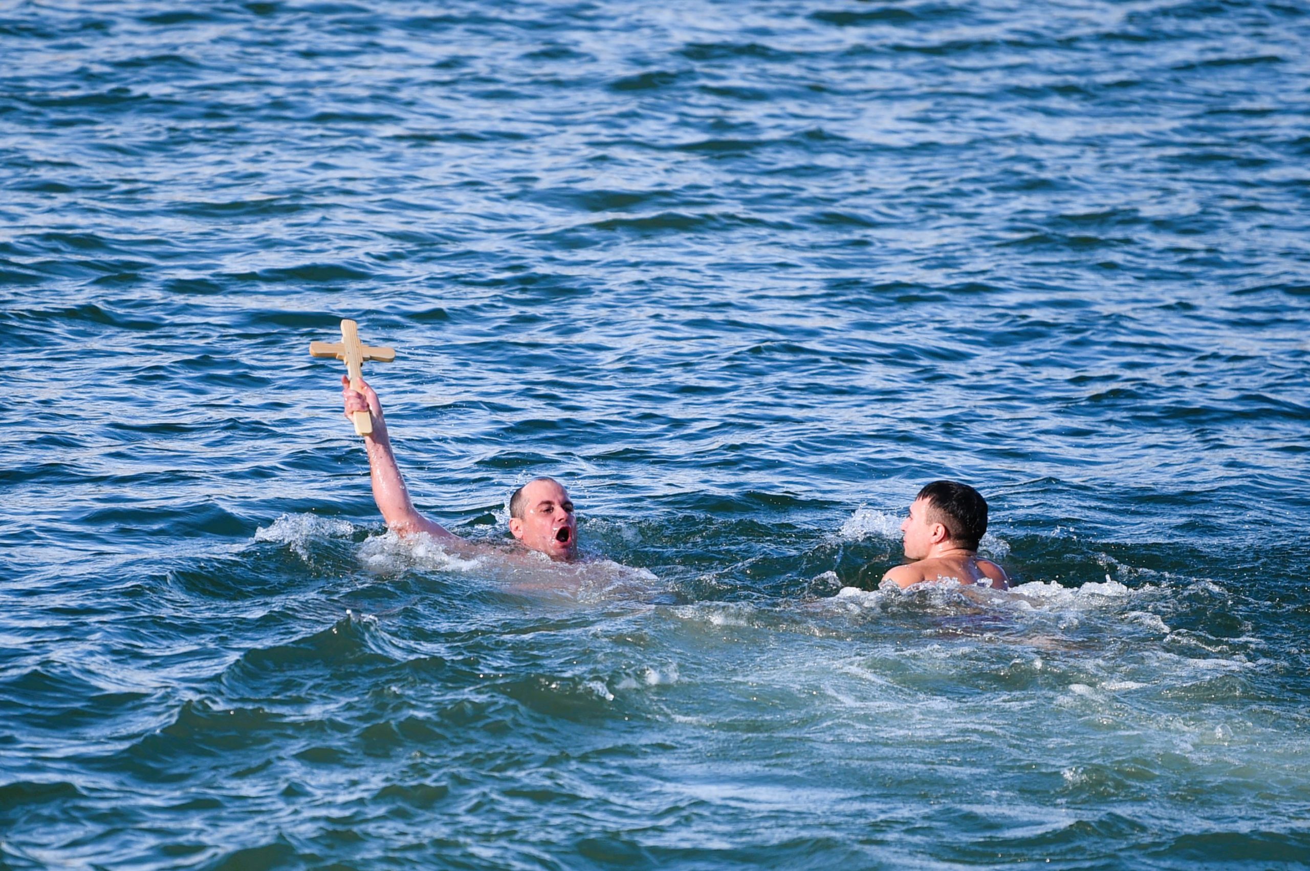 Tinerii curajoși se întrec înot pentru a recupera crucea, iar datina spune că cel care ajunge primul la ea și o aduce înapoi la mal va fi sănătos și binecuvântat tot anul.
