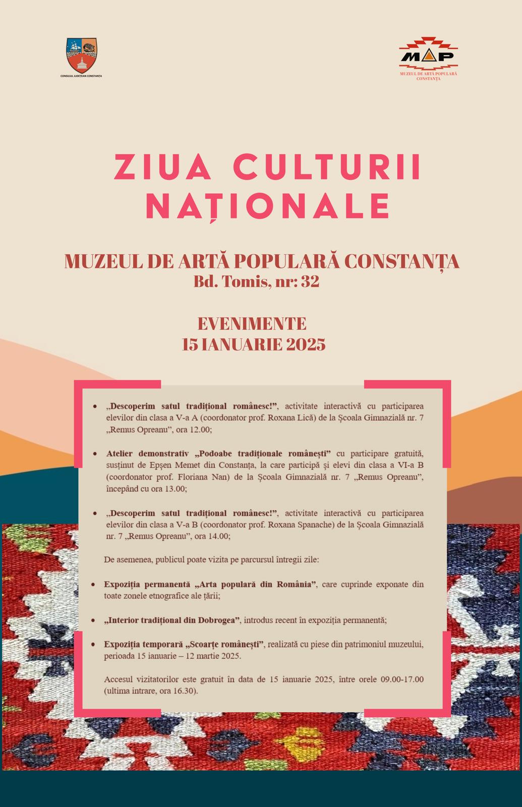 Muzeul de Artă Populară Constanța sărbătorește Ziua Culturii Naționale, în data de 15 ianuarie, prin manifestări la care participarea publicului este gratuită.